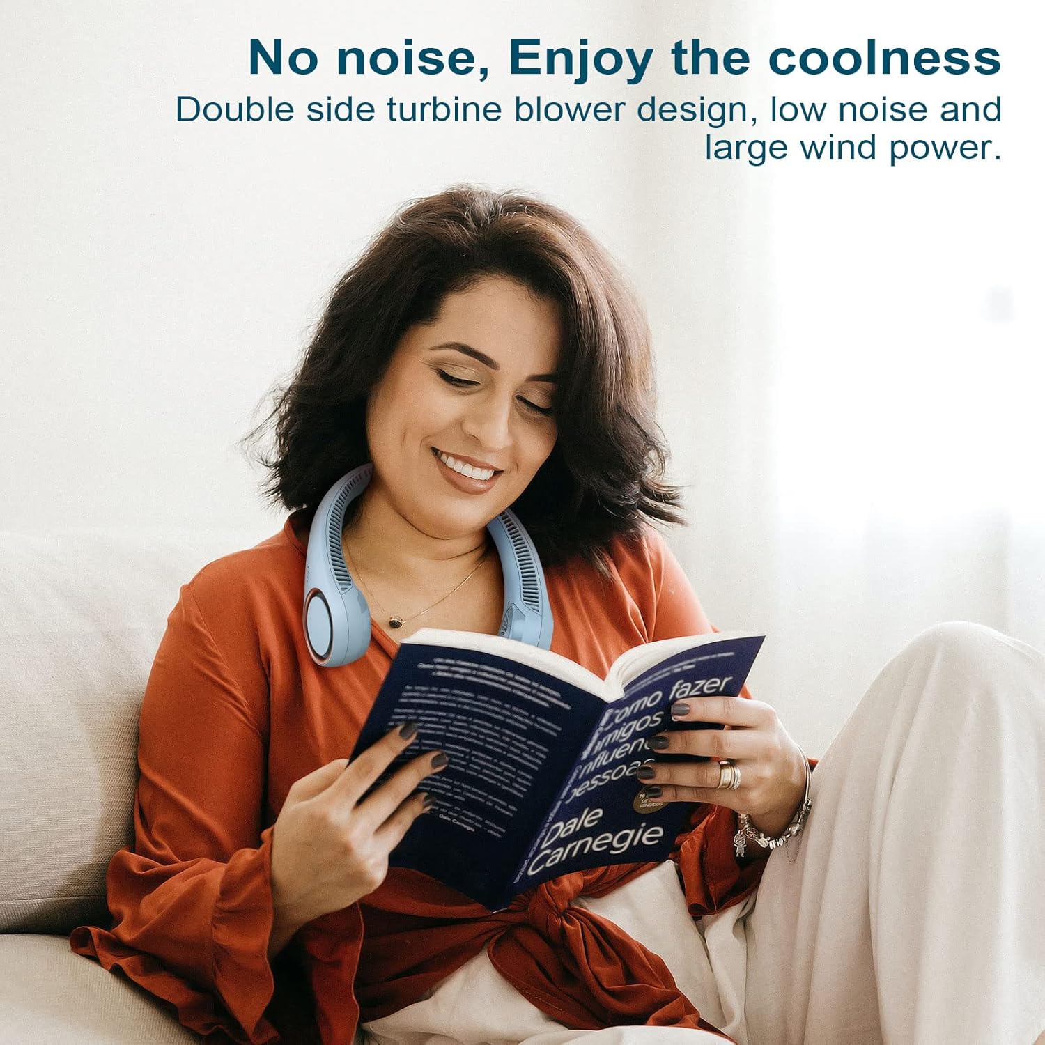 - Low noise and comfort: Excellent upgraded technology with multi-stage air duct design greatly reduces fan noise. Made of ABS and silicone, it is natural to wear, comfortable and skin-friendly. Wearing the neck fan can also study or work without worry