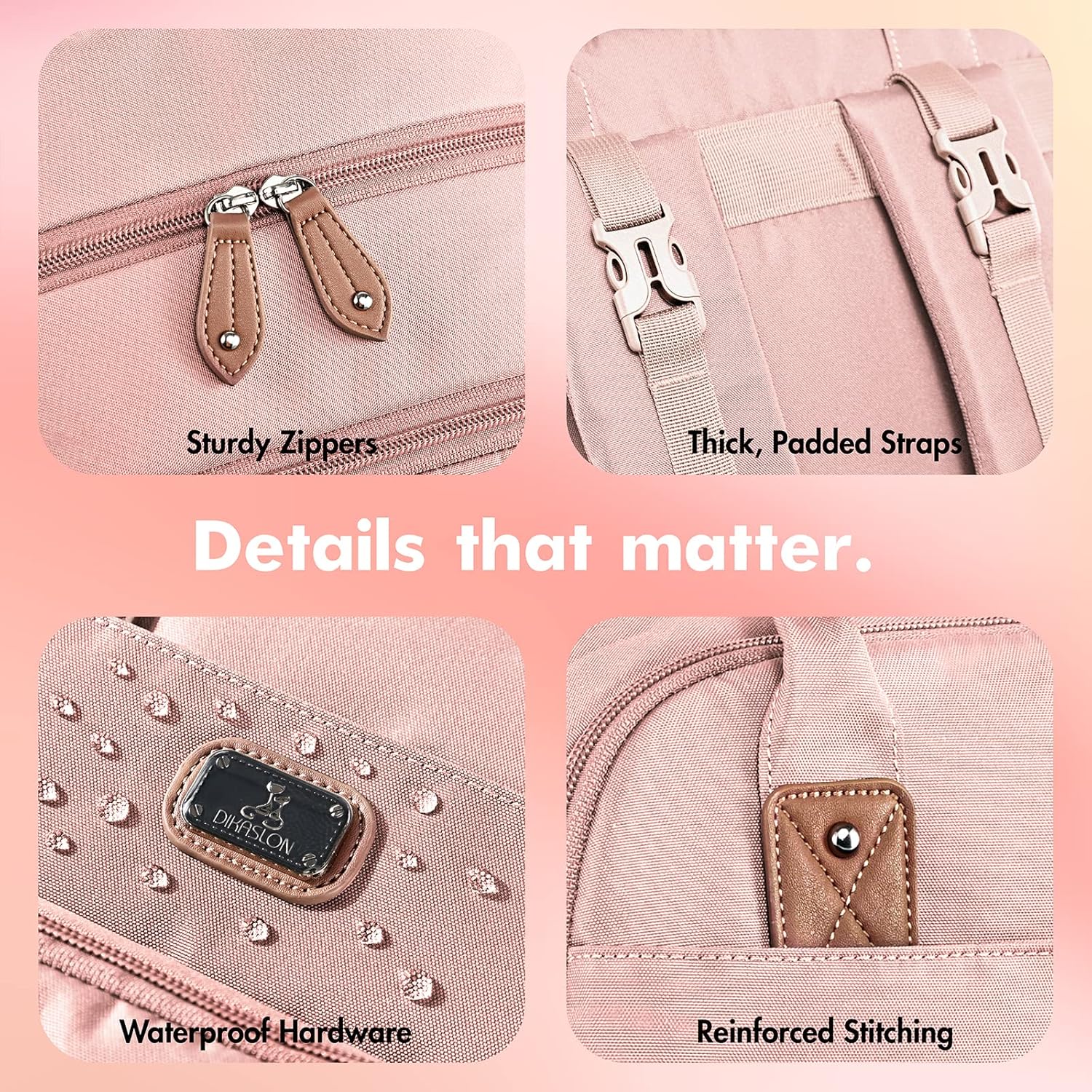Dikaslon Diaper Bag Backpack with Portable Changing Pad, Pacifier Case and Stroller Straps, Large Unisex Baby Bags for Boys Girls, Multipurpose Travel Back Pack Moms Dads, Pink