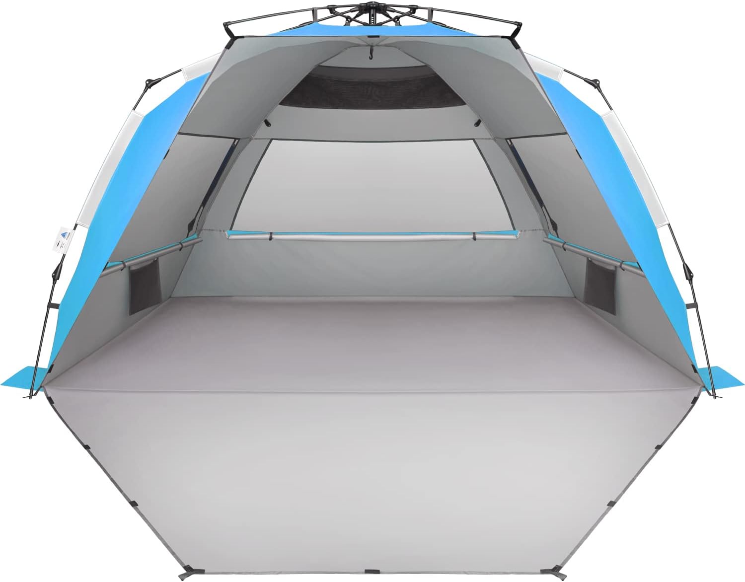 Oileus XX-Large Beach Tent Sun Shelter for 5-6 Person Portable Sun Shade Instant Pop Up Tent for Beach with Carrying Bag, Stakes, 6 Sand Pockets, Anti UV for Fishing Hiking Camping Blue