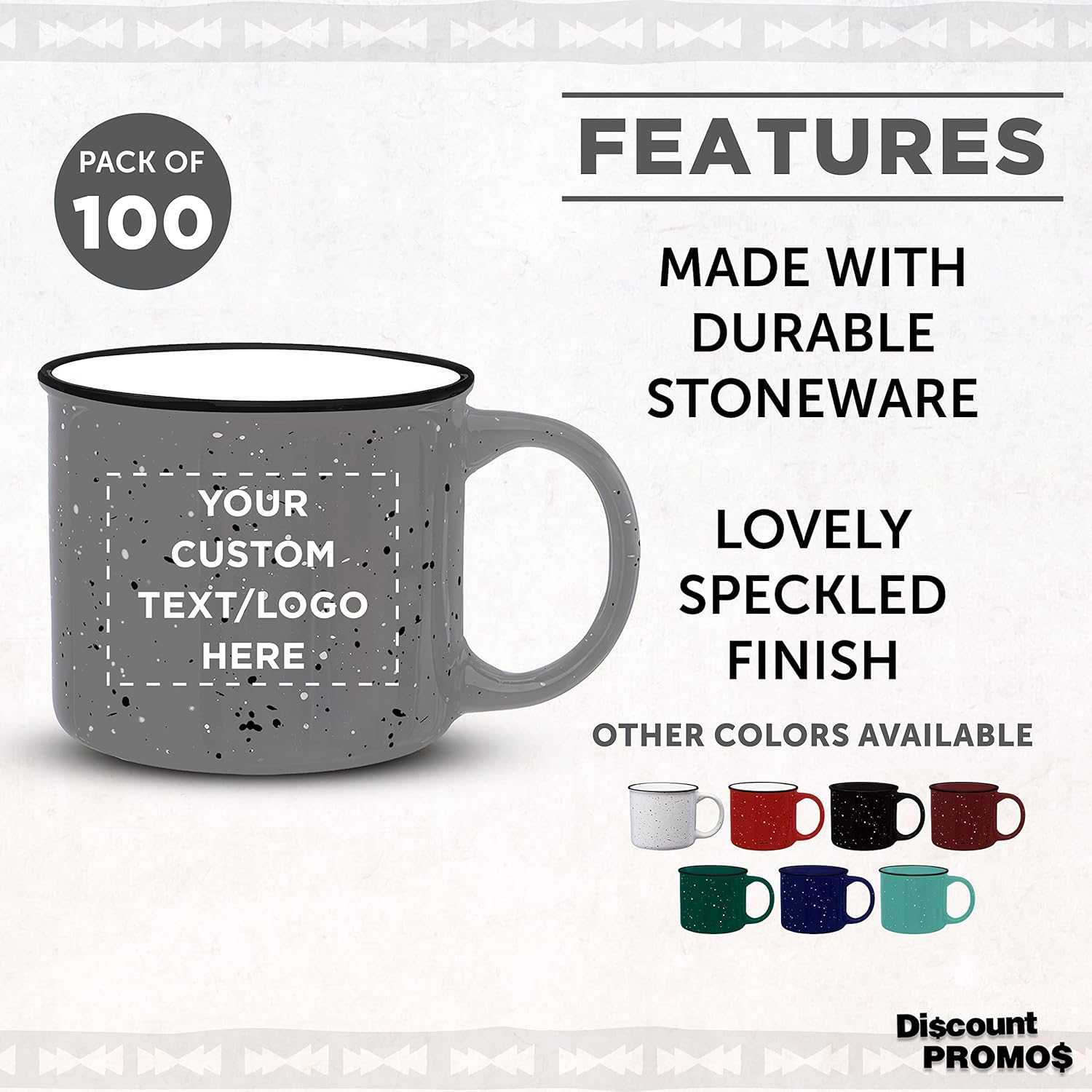 DISCOUNT PROMOS Custom Ceramic Campfire Coffee Mugs 13 oz. Set of 100, Personalized Bulk Pack - Perfect for Tea, Espresso, Cappuccino, Hot Cocoa - Grey