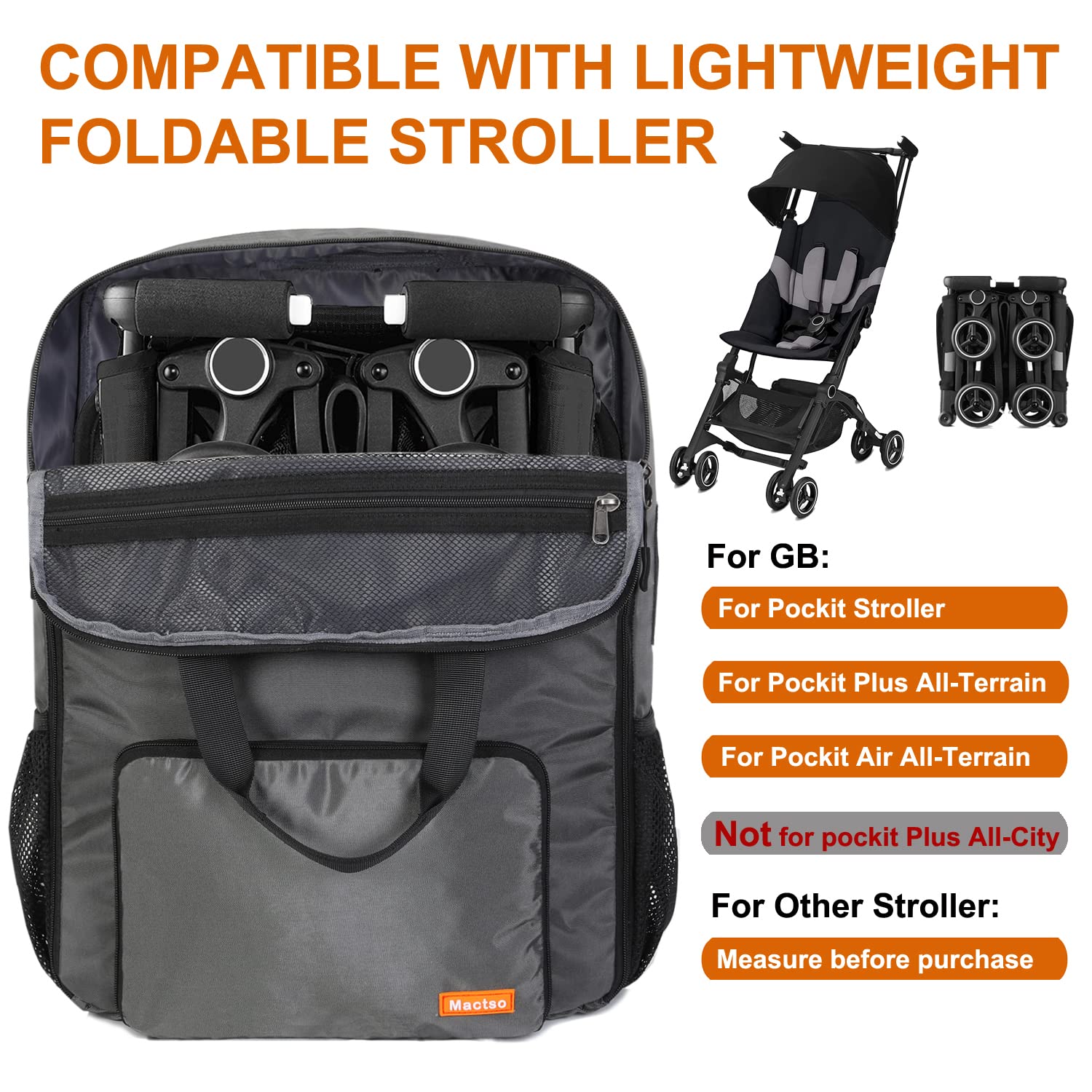 Mactso Stroller Travel Bag Compatible with GB Pockit and GB Pockit Air Plus All Terrain, Lightweight Stroller Travel Backpack for Airplane (Grey, M)