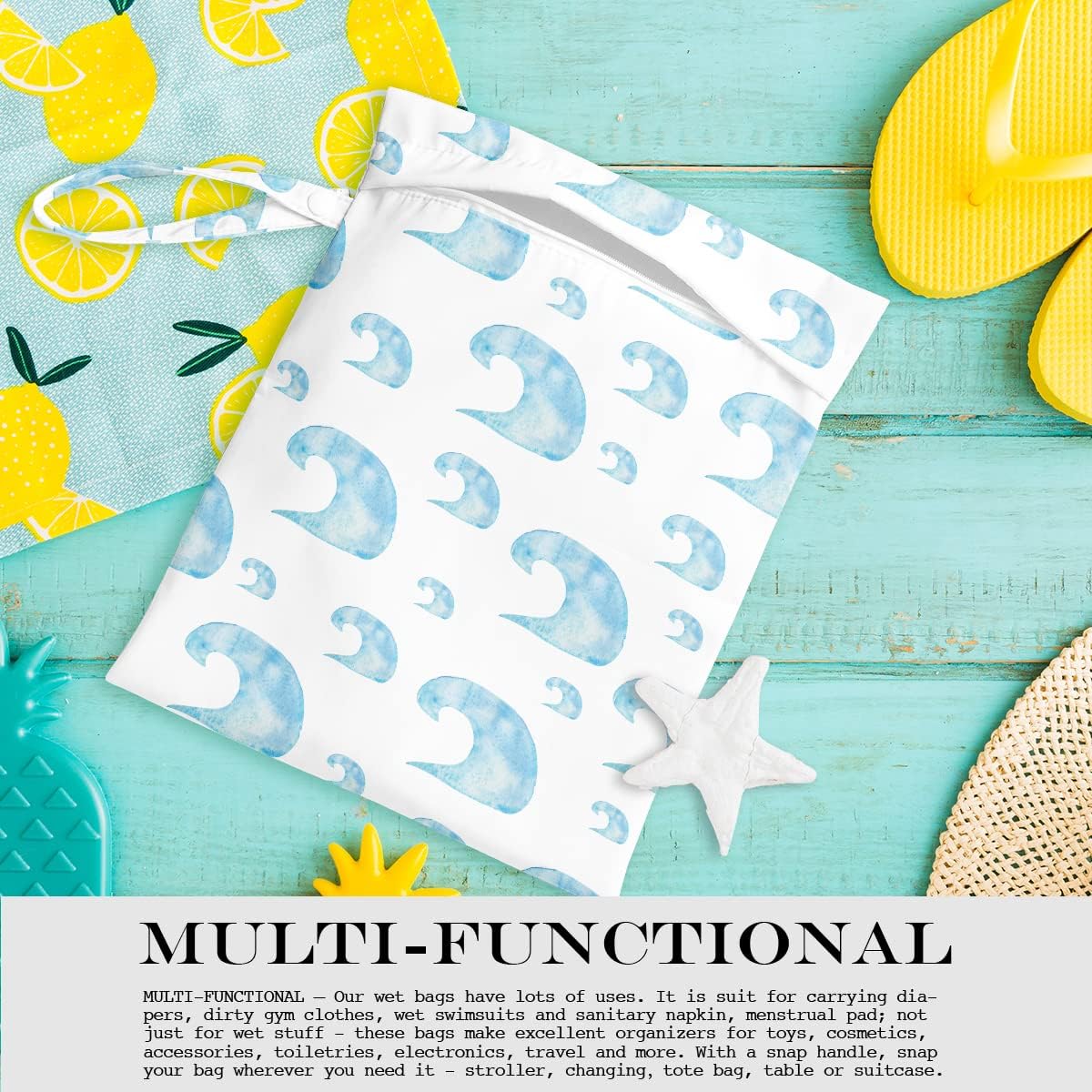 - MULTI-FUNCTIONAL – Our wet bags have lots of uses. It is suit for carrying diapers, dirty gym clothes, wet swimsuits and sanitary napkin, menstrual pad; not just for wet stuff - these bags make excellent organizers for toys, cosmetics, accessories, toiletries, electronics, travel and more. With a snap handle, snap your bag wherever you need it - , changing,tote bag, table or suitcase.