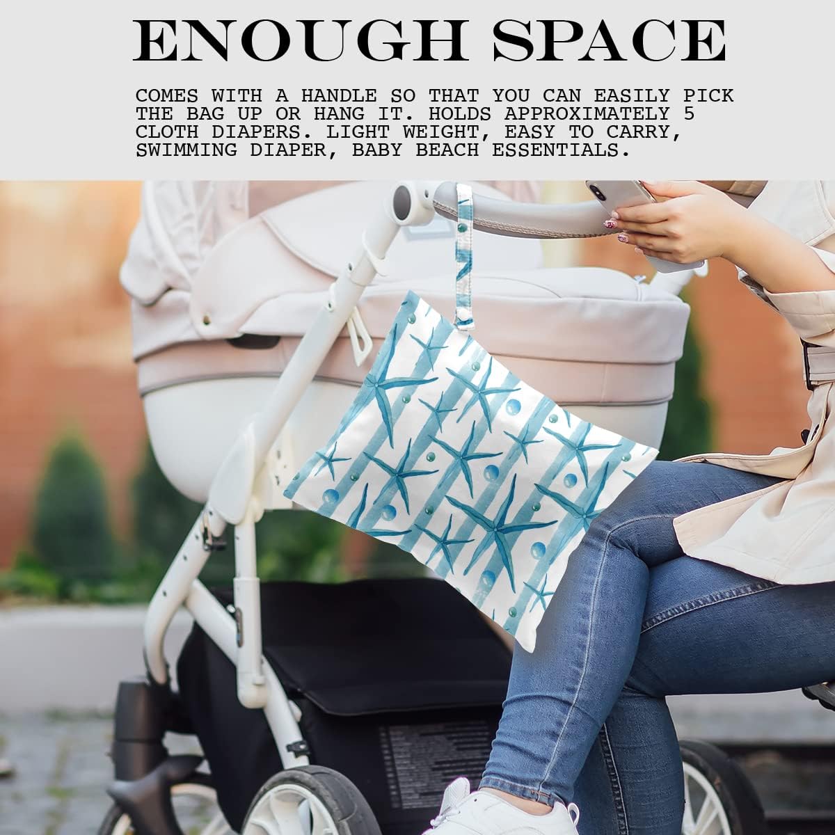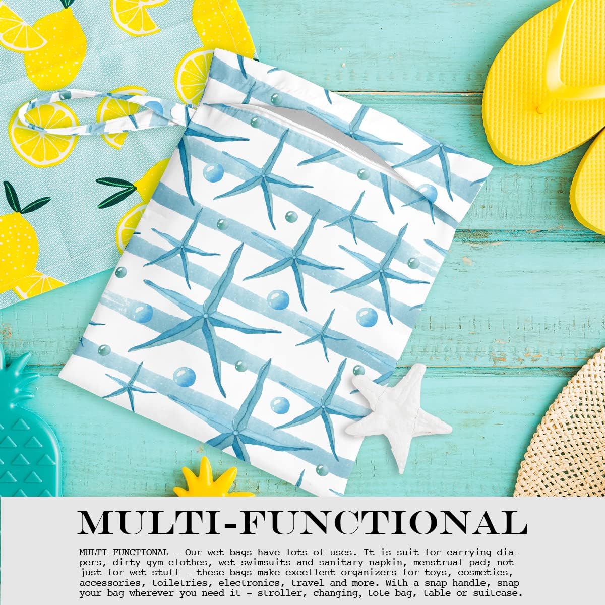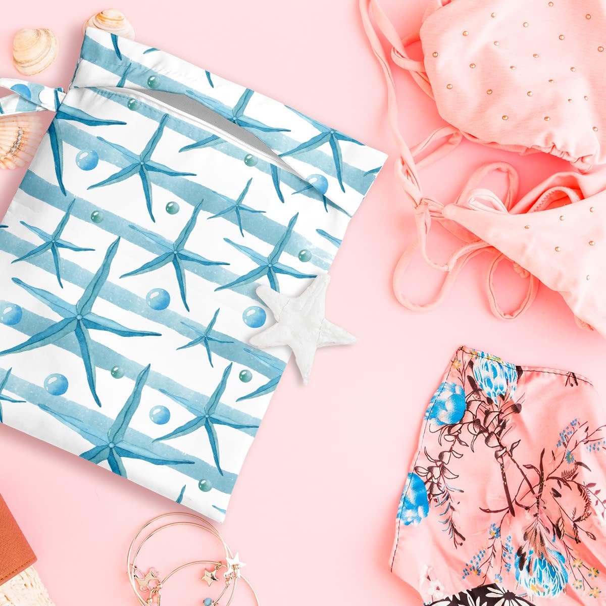 Wet Dry Bag for Swimsuit, Travel, Beach, Pool, Diapers, Dirty Yoga Gym Clothes, Makeup, Waterproof Reusable Beach Bag with Ocean Decor Starfish Sea Horse Anchor