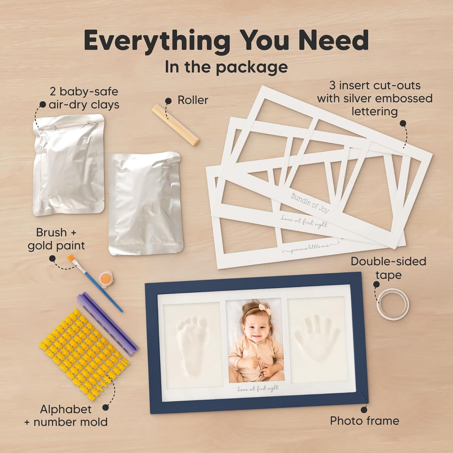 Baby Hand and Footprint Kit - Clay Handprint Keepsake Frame, Newborn Nursery Picture Frame, Personalized New Mom Gifts for Baby Shower & Registry (Midnight Blue)