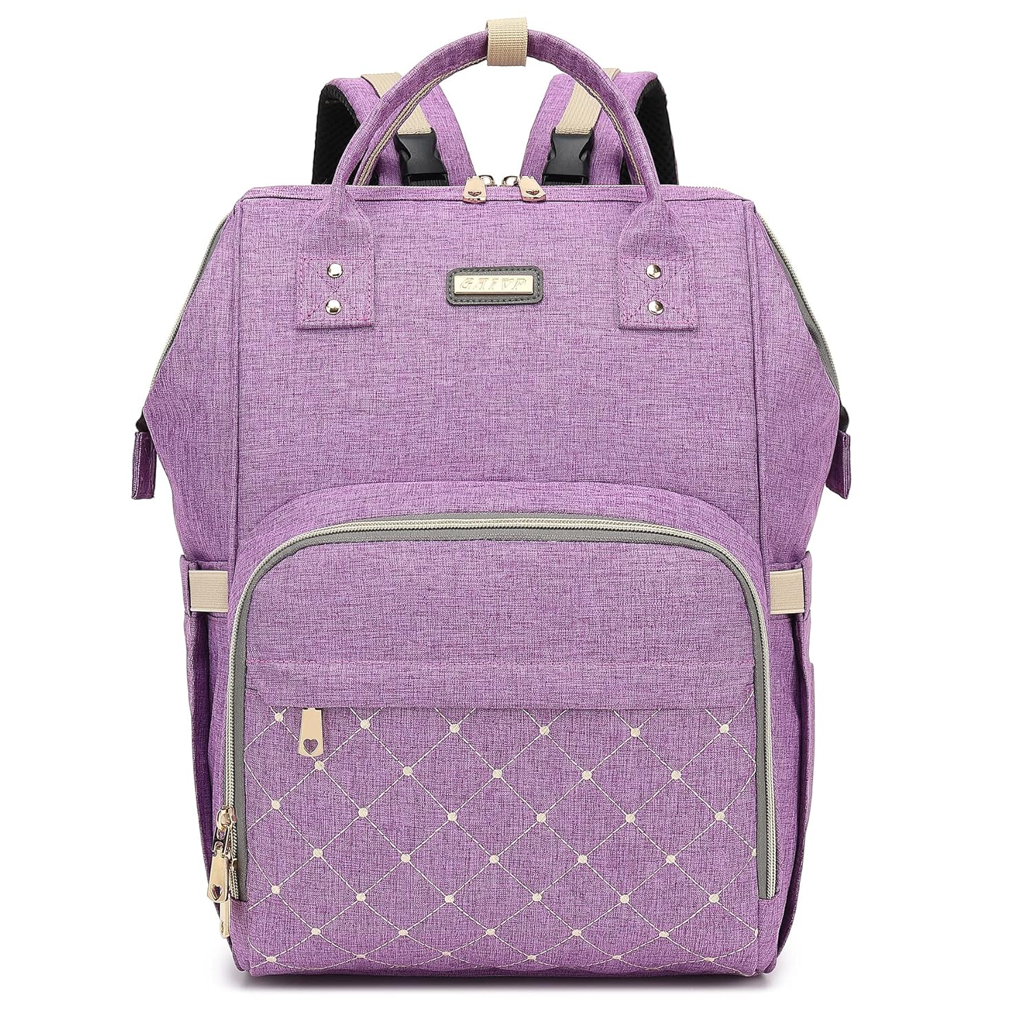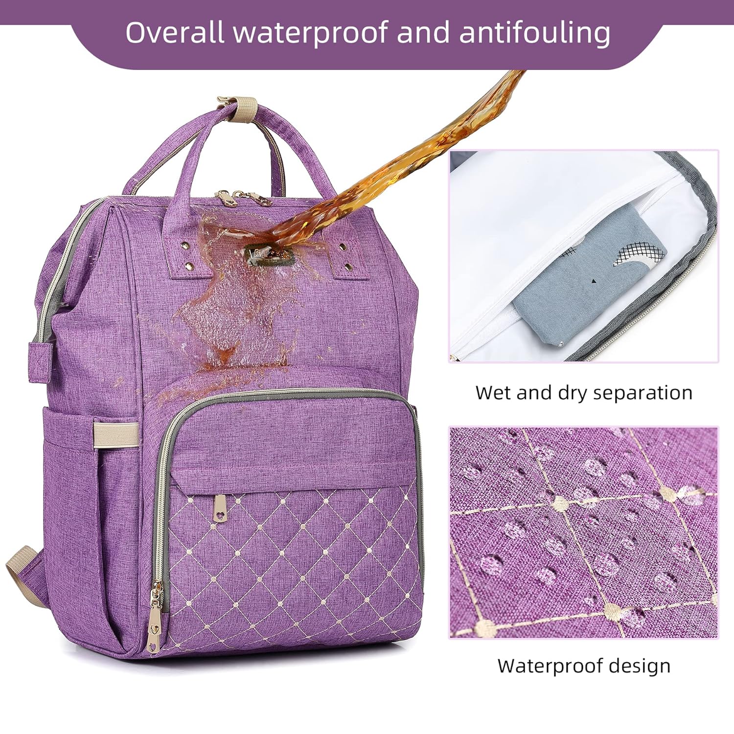 Diaper Bag Backpack, Diaper Bags for Baby Girls Boys, Baby Bags for Moms Dads, Nappy Changing Bag with Insulated Pockets,Multi-functional Waterproof Backpack with Stroller straps-Purple