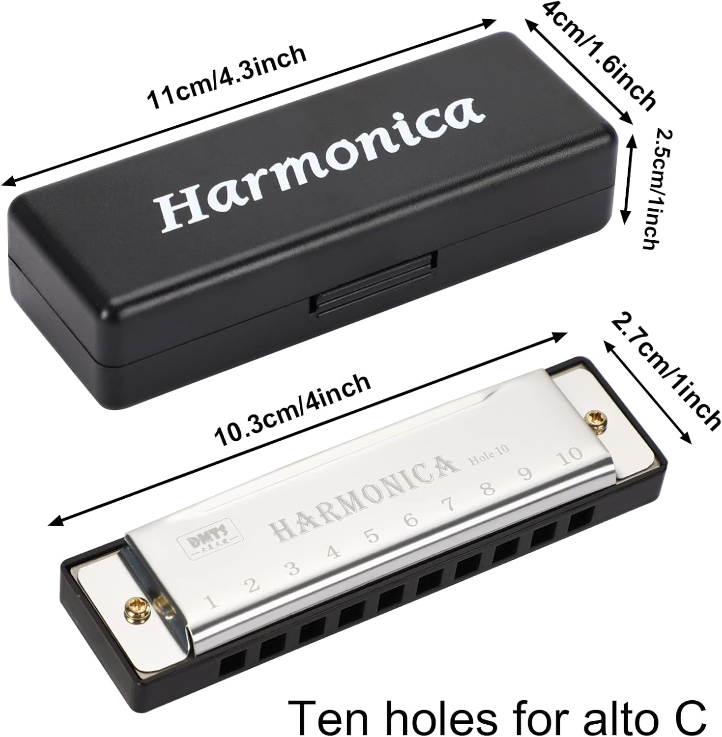 - 【Premium Material】We have adopted the titanium metal panel, the10 holes and 10 tones harmonica bulk is compact, sturdy and not easy to deform. The harmonica looks nice, elegant and not cheap looking with the color of silvery and smooth touch