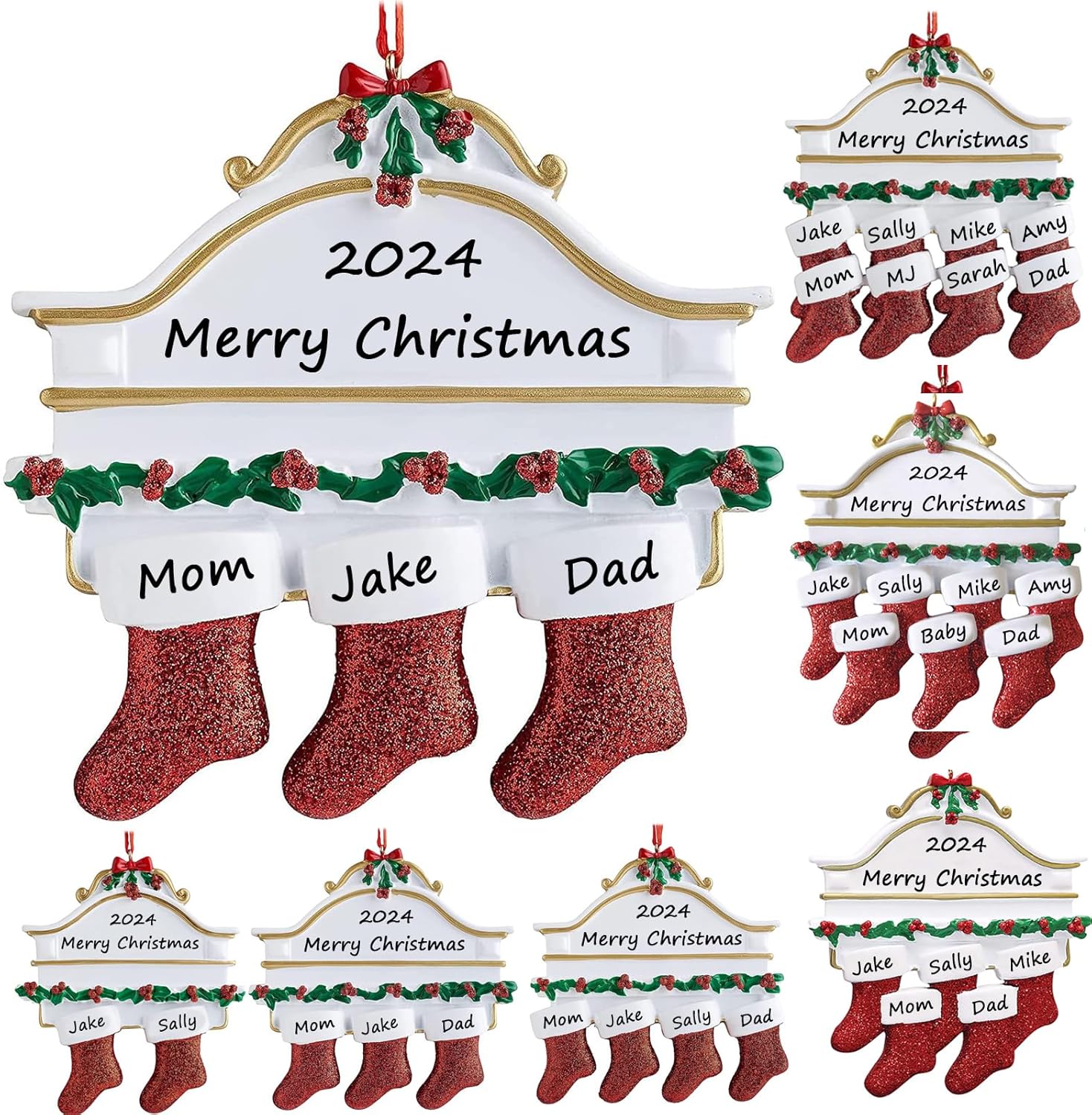 Personalized Christmas Ornaments 2025 Family of 2/3/4/5/6/7/8 Custom Christmas Stocking Ornament with Names Customized Ornaments for Xmas Tree,Family of 3