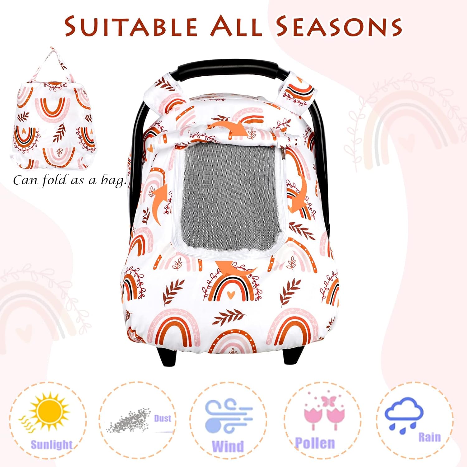 Pea Pod Baby Car Seat Cover Girls, Infant Rainbow Car Seat Covers Canopy for Newborn,2 Layers Windows of Breathable Mesh/Fabric, Lightweight Polyester/Minky Dot Backing, Snug Fit Most Baby Car Seat