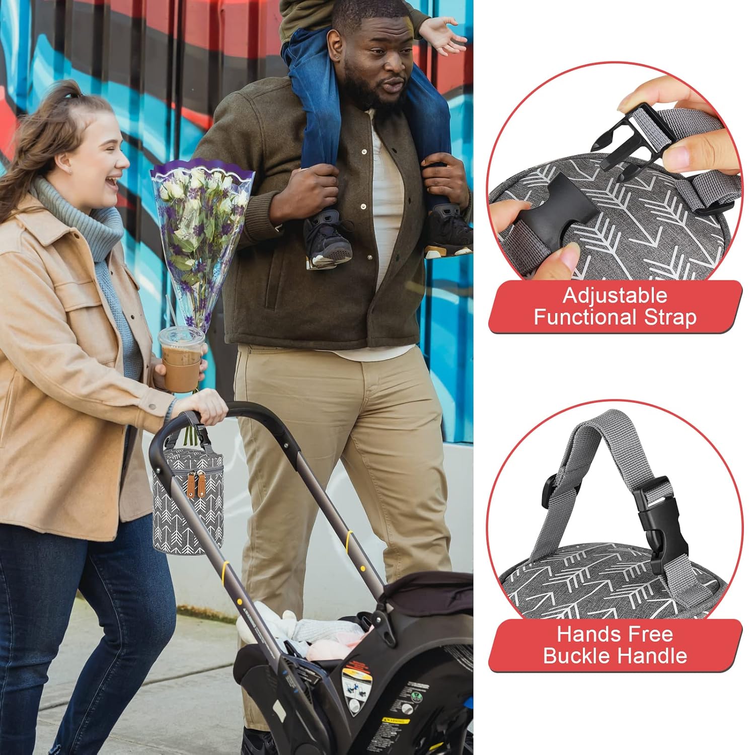 - DETACHABLE BUCKLE DESIGN: The detachable buckle is designed for hanging on a baby stroller or car seat. Fits for any stroller or pet Stroller. You can also attach it to diaper bag, back seat of car, or take it as a small tote bag.