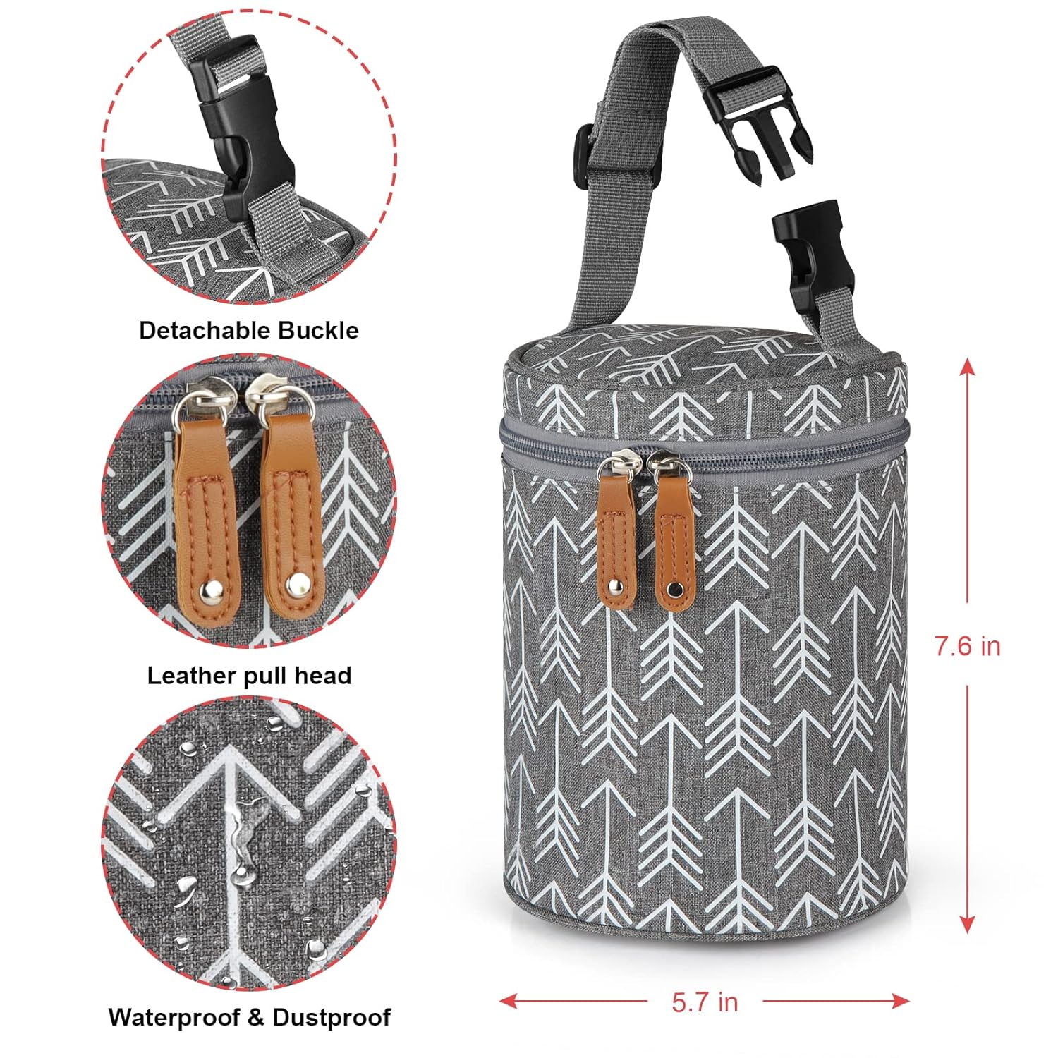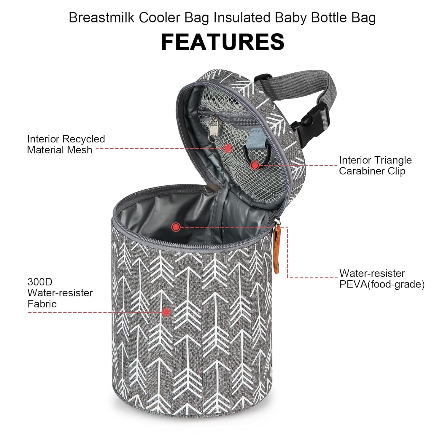 - WATERPROOF & LEAKPROOF: Waterproof fabric is used inside and outside the bag. It is easy to clean the inner, just wipe it off with cloth or paper towel if liquid spills. Composite oxford fabric is resistant to water, dirty and abrasion, protecting items inside. The internal mesh pocket can be used to place ice bags, pacifiers and other small items.
