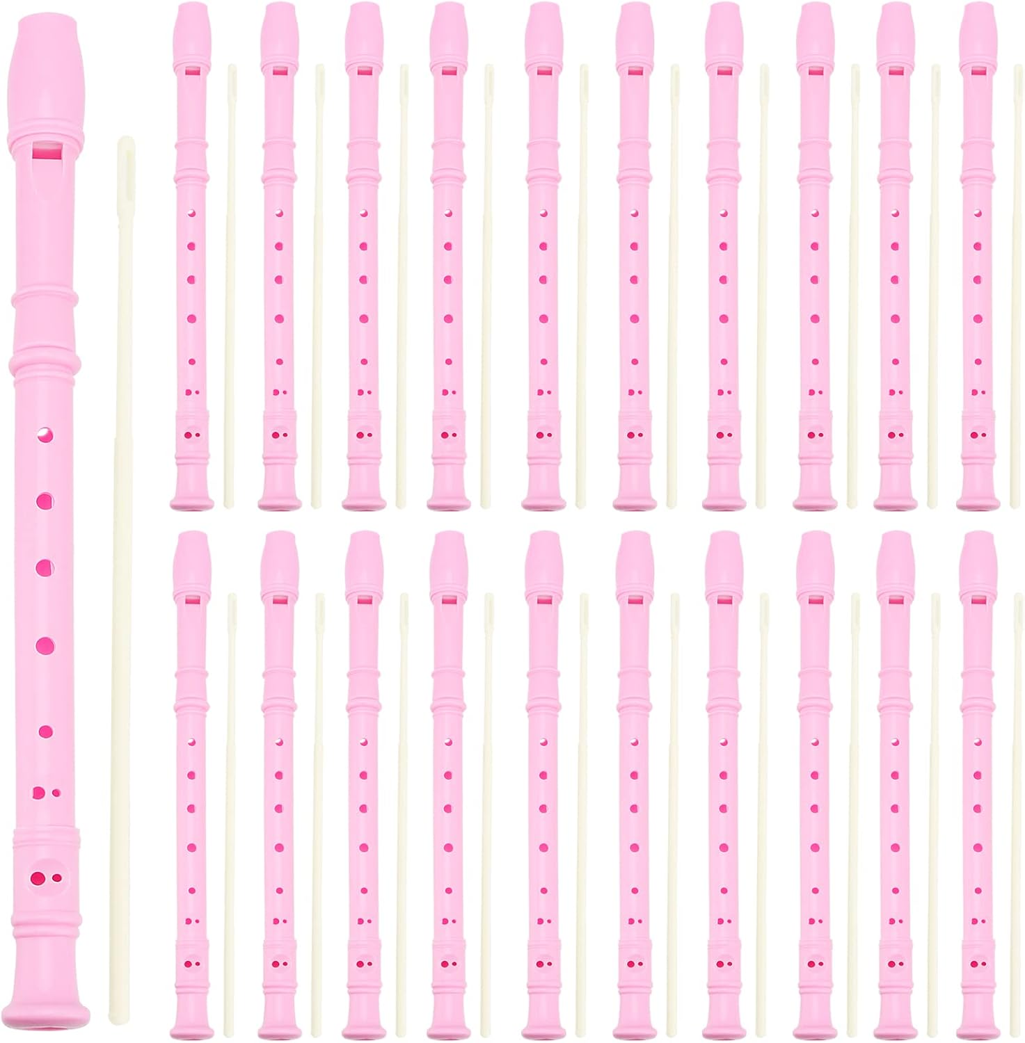 - GREAT VALUE PACK - You'll get a pack of 20 packs of recorder instrument pink, each is 11.8inches/ 30cm long with a cleaning stick and a bag attached. The quantity is sufficient. And they're lightweight and handy when you need to take them out.
