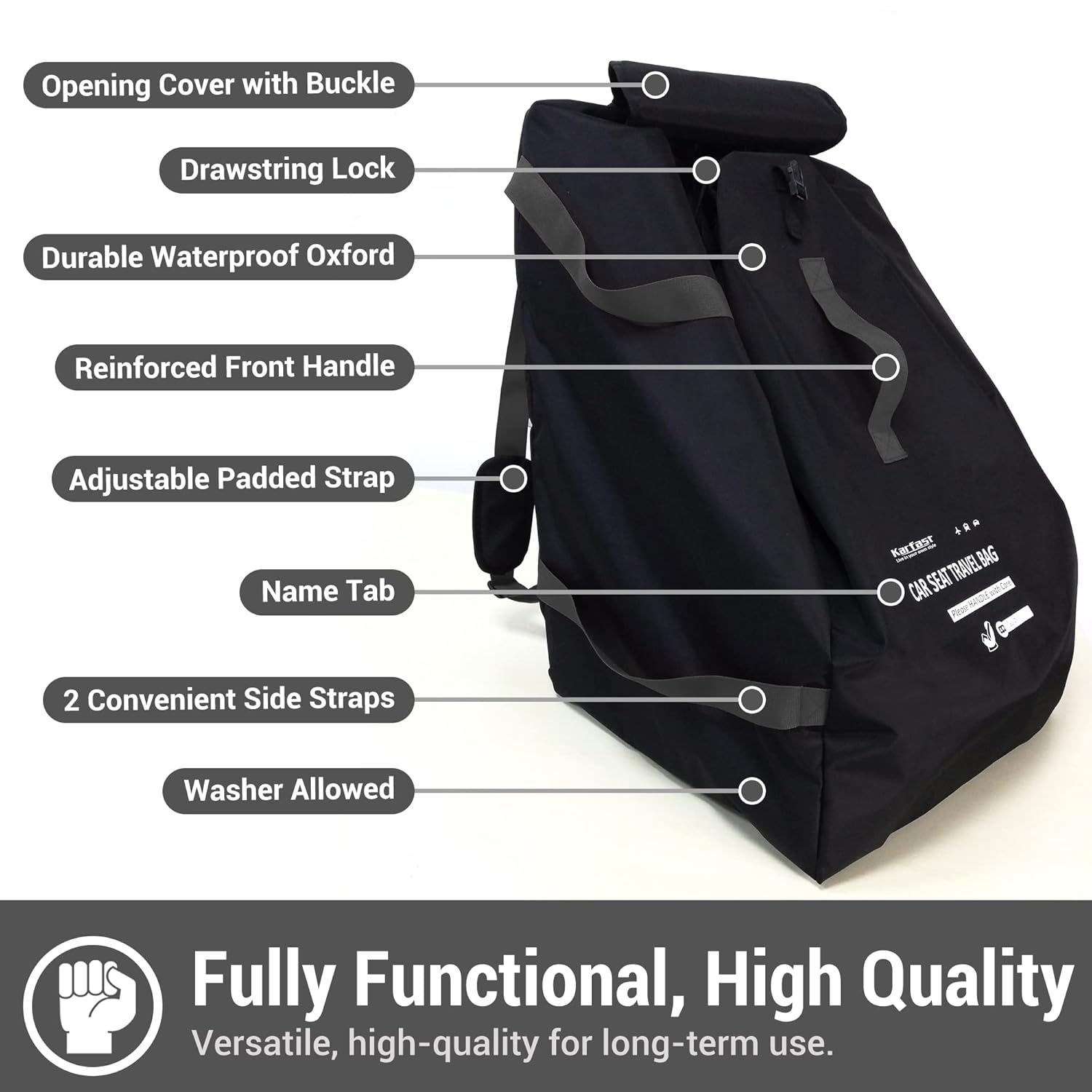 - โ FULLY FUNCTIONAL - This kiddie carseat cover protector will keep your kid carseat away from conveyor damage. Adjustable, ergonomic harness-style padded backpack straps makes carrying more comfortable. Easy to get a large car seat into a compact hand bag without a lot of manuevering.