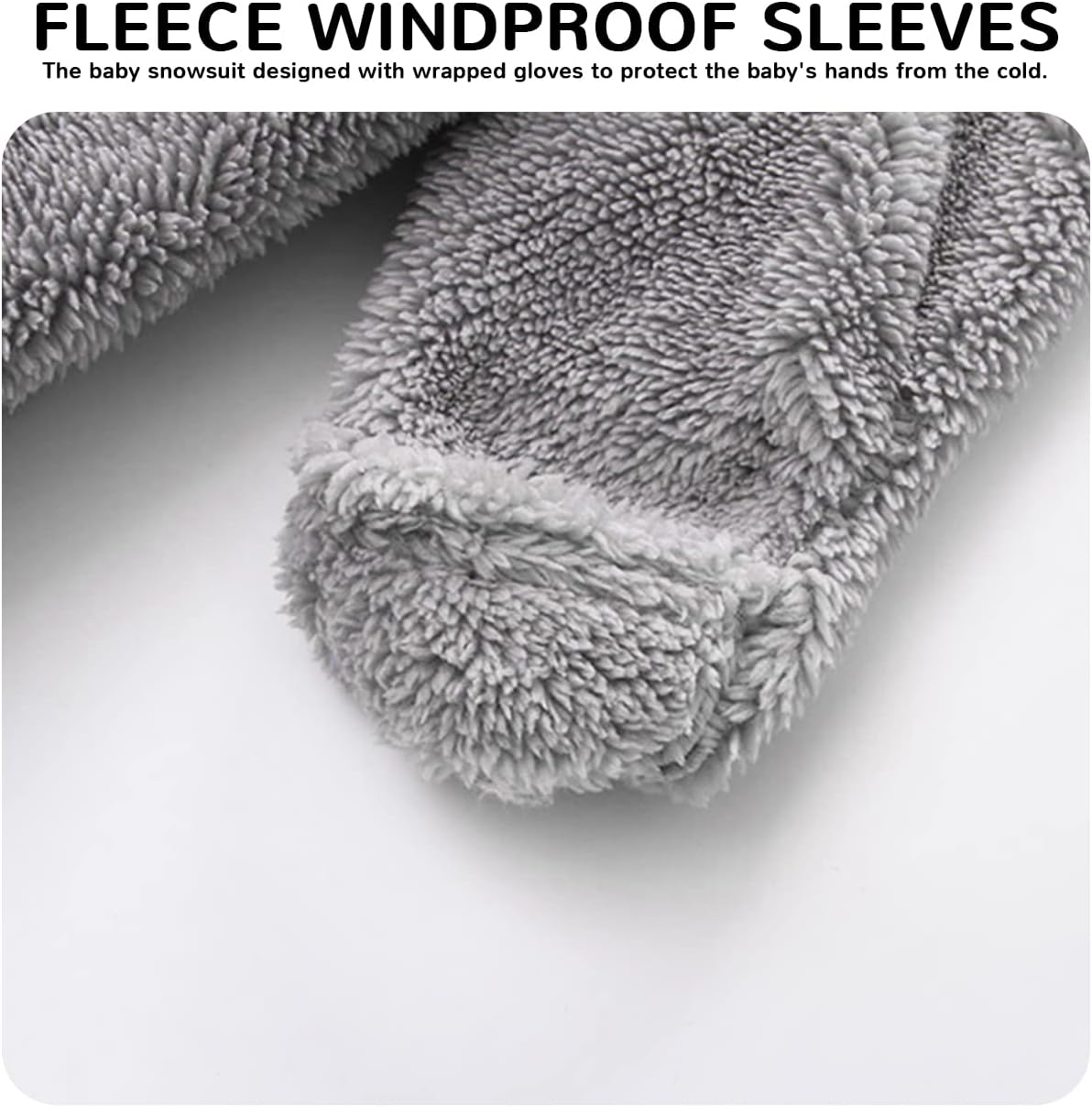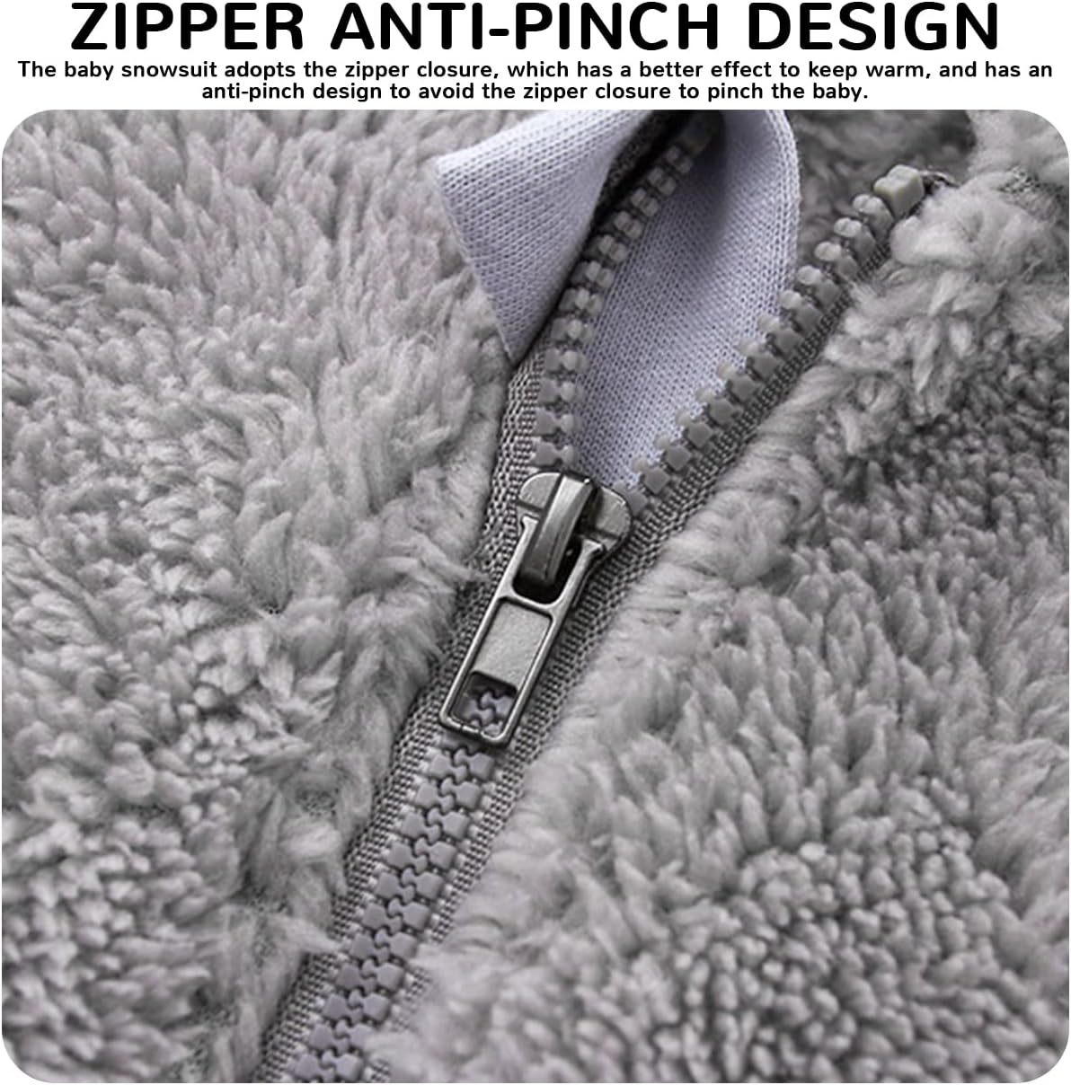- ❤♥Material: This baby snow suit made of high quality polyester fiber, double lining, fine polyester fiber cares for baby's delicate skin. The newborn winter outfit hoodie whole body jumpsuit design, keeps the baby's head and ears inside and warm when outing. The toddler boys & girls snow suit accompanies the baby through the cold winter.