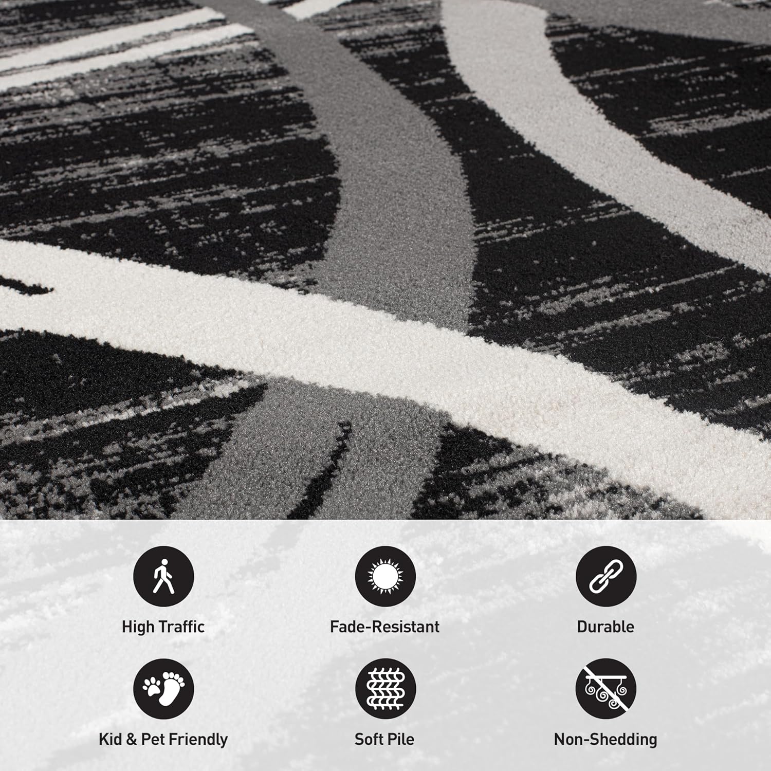 - Low Maintenance: The rug's dense pile and heavy surface texture are designed for easy cleaning and low shedding, perfect for busy, high-traffic areas.