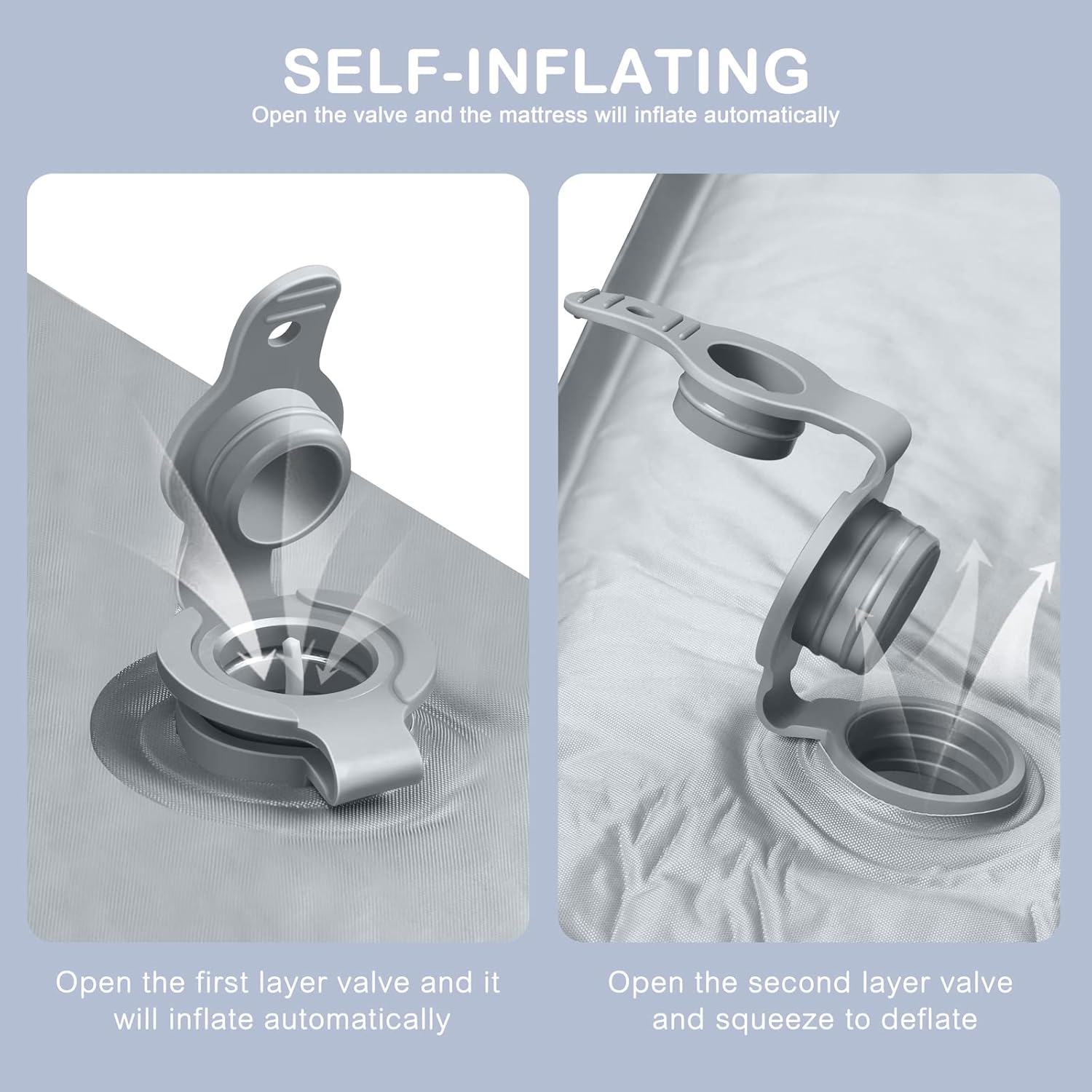 - SELF-INFLATING - Designed with two fast flow valves to quickly and efficiently inflate the foam pad to optimal firmness. No air pump required.