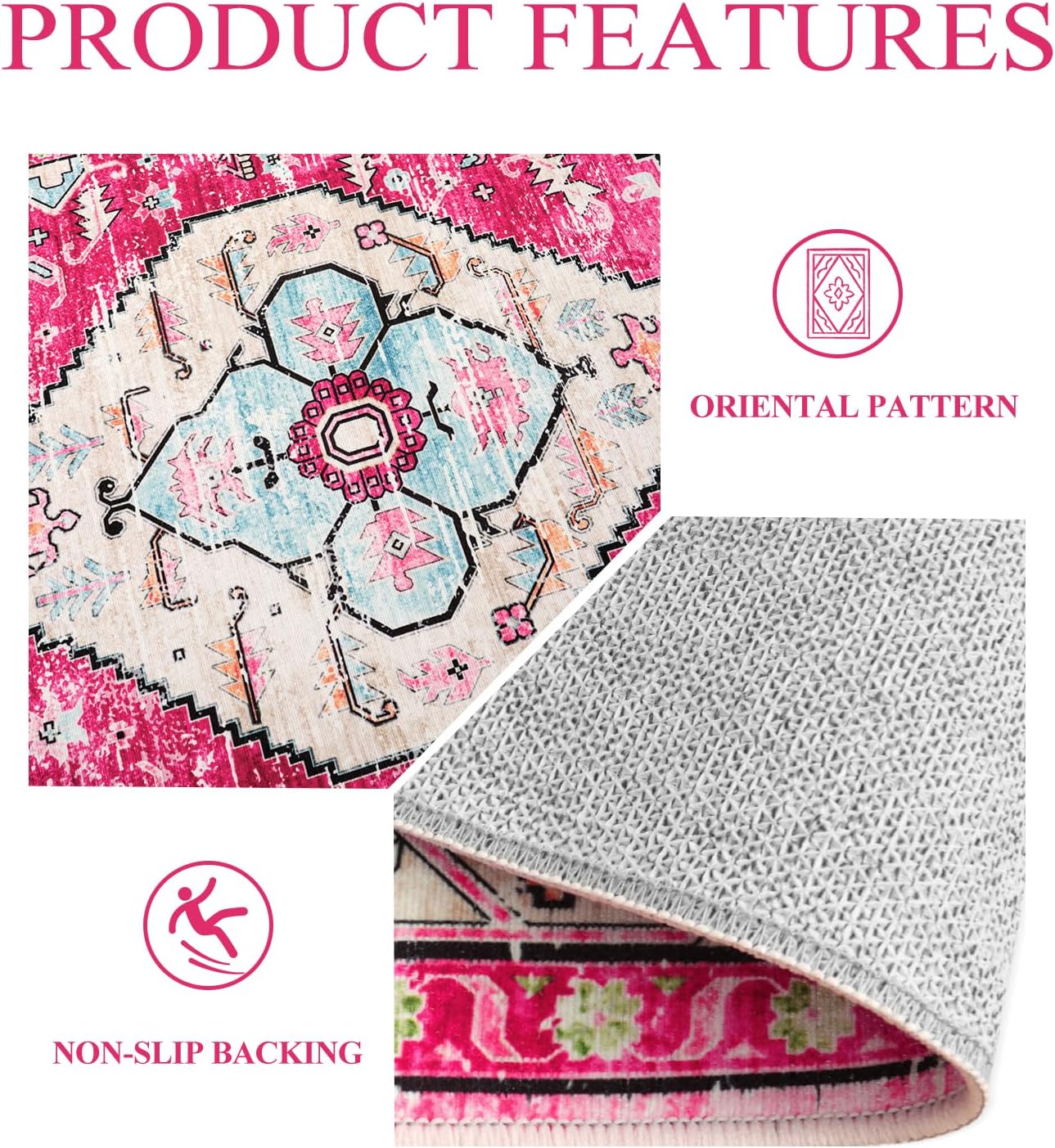 - Oriental Design: The indoor rug is made of comforable chenille material, which is lightweight, soft and stain resistant in daily use. Classic colors with elements of medallion and borders make your room vintage and vibrant