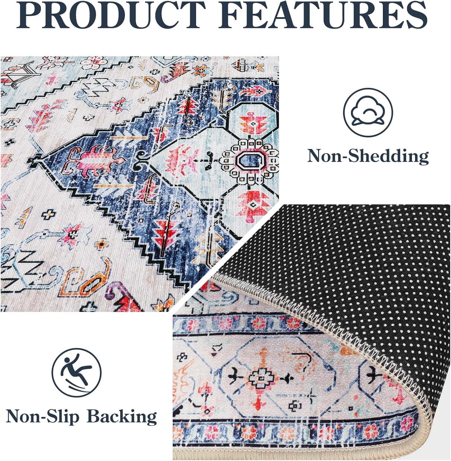 - Oriental Design: The indoor rug is made of comforable chenille material, which is lightweight, soft and stain resistant in daily use. Classic colors with elements of medallion and borders make your room vintage and vibrant
