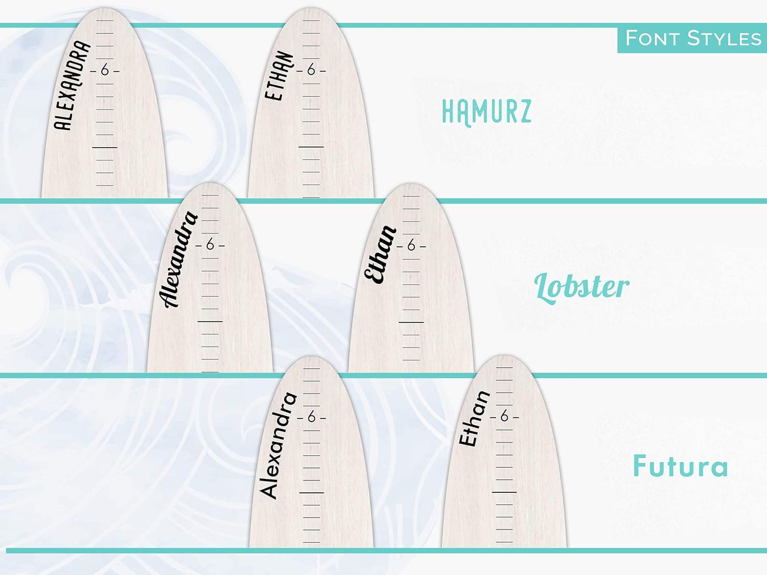 - IDEAL SIZE AND UNIQUE DESIGN: Measuring 57โ long and 10.5โ wide, our surfboard-style charts can measure heights up to 6'5". Ideal for ocean lovers, these height measurement for wall charts are great keepsakes for tracking your child's growth and milestones. Enhance your surfboard decor with this unique piece.
