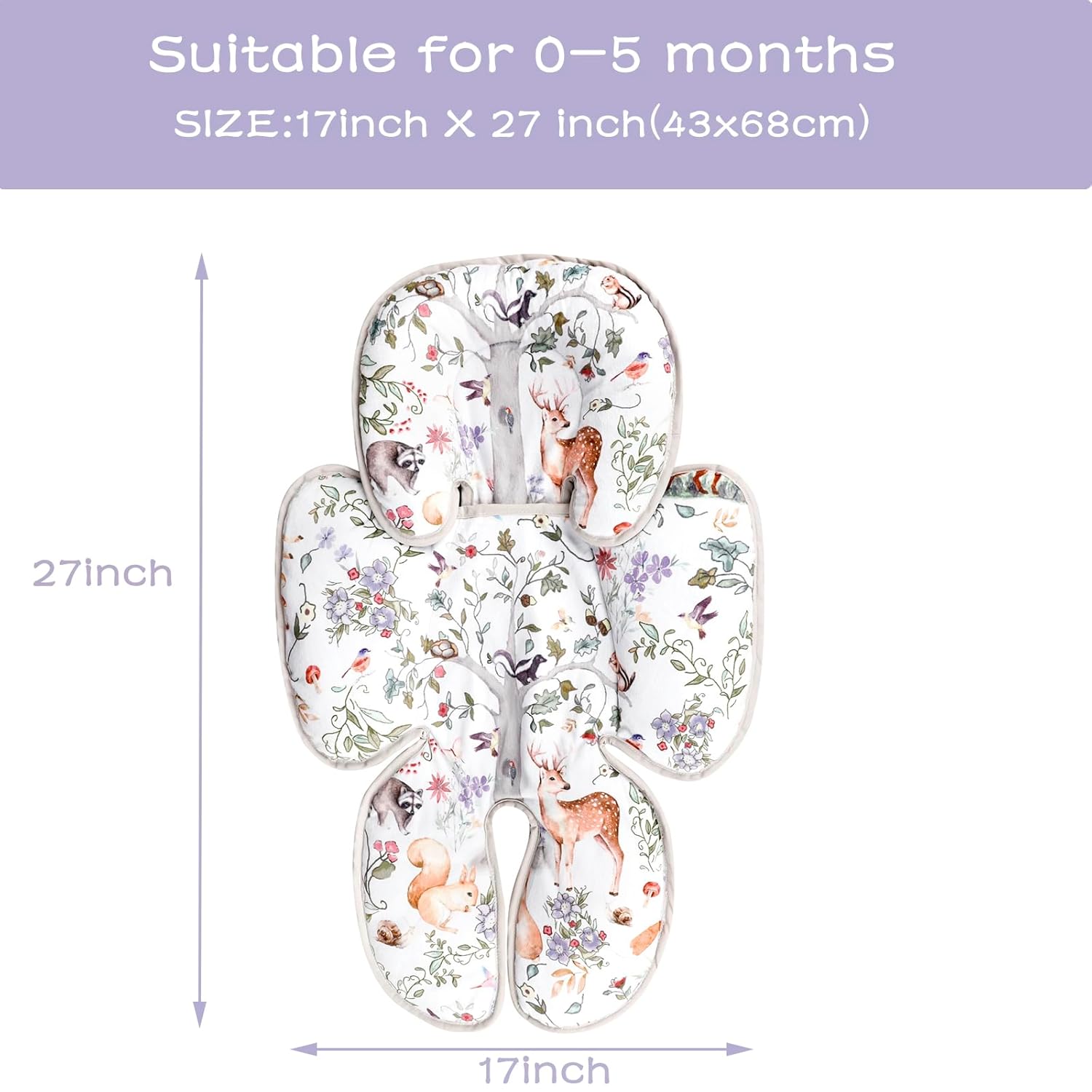 - Age Recommended: The newborn carseat insert cushion measures 27.5 x 17 inches and is recommended for premature babies and babies weighing up to 15 lbs