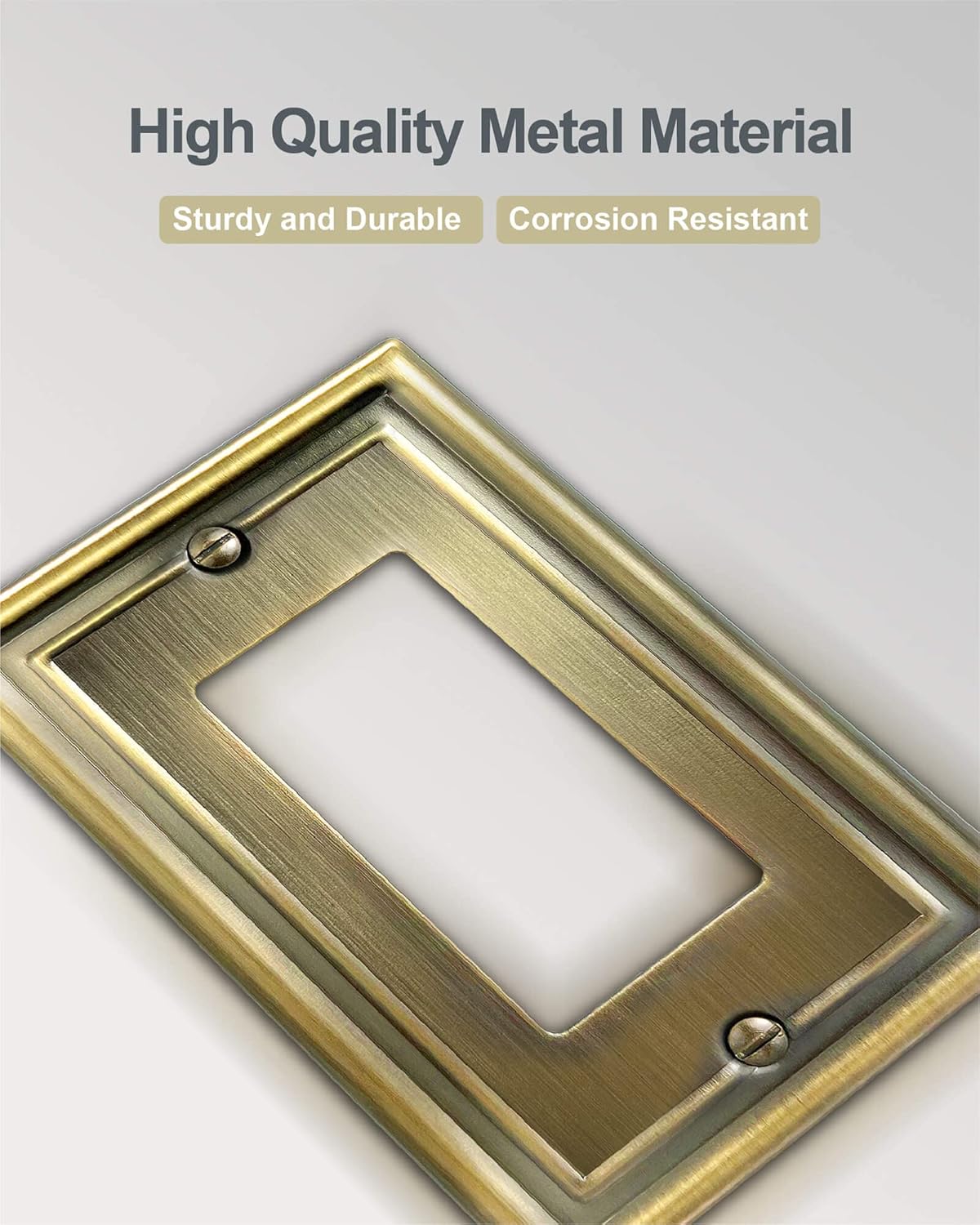 Decorator/Rocker Wall Plate for Dimmer Switch, GFCI Outlet and Receptacal, Metal Outlet Covers Switch Plate, Antique Brass, Single Gang, 4 Pack