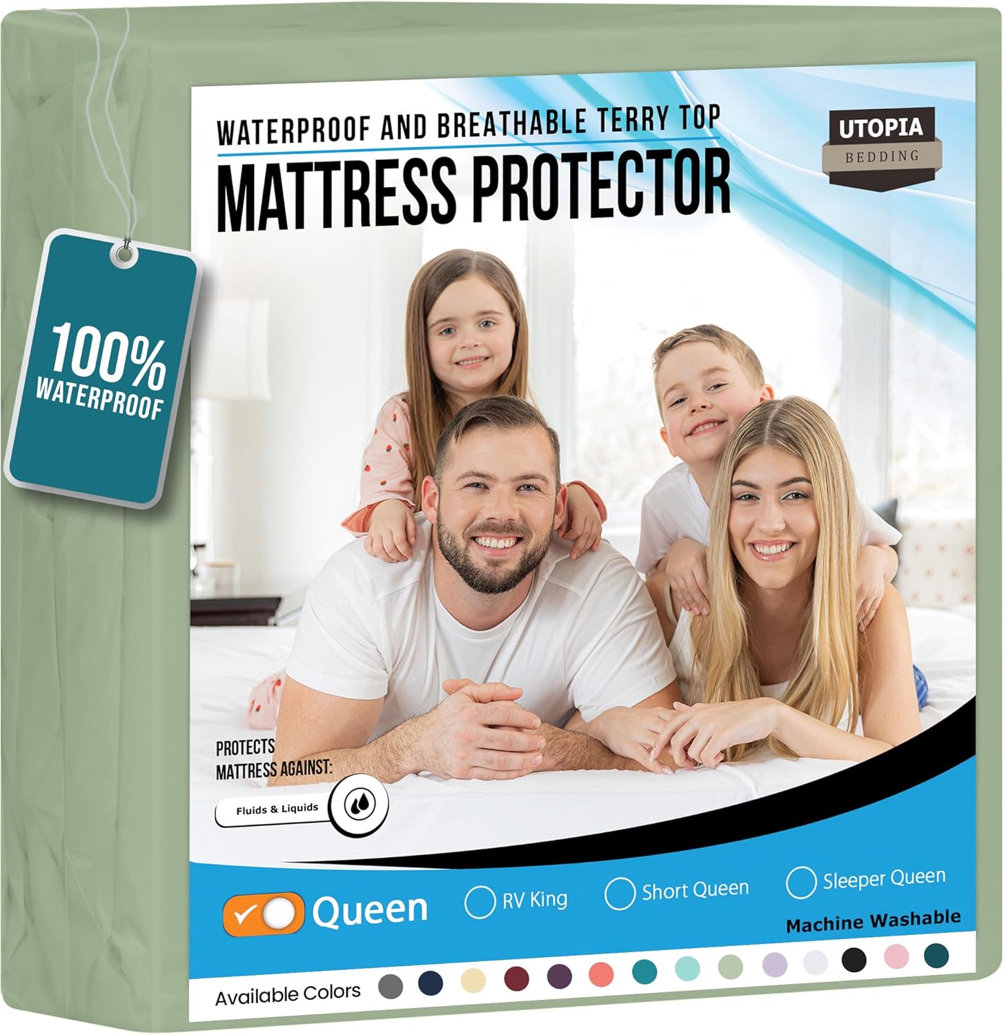 Utopia Bedding Waterproof Mattress Protector Queen Size, Premium Terry Mattress Cover 200 GSM, Breathable, Fitted Style with Stretchable Pockets (Sage)