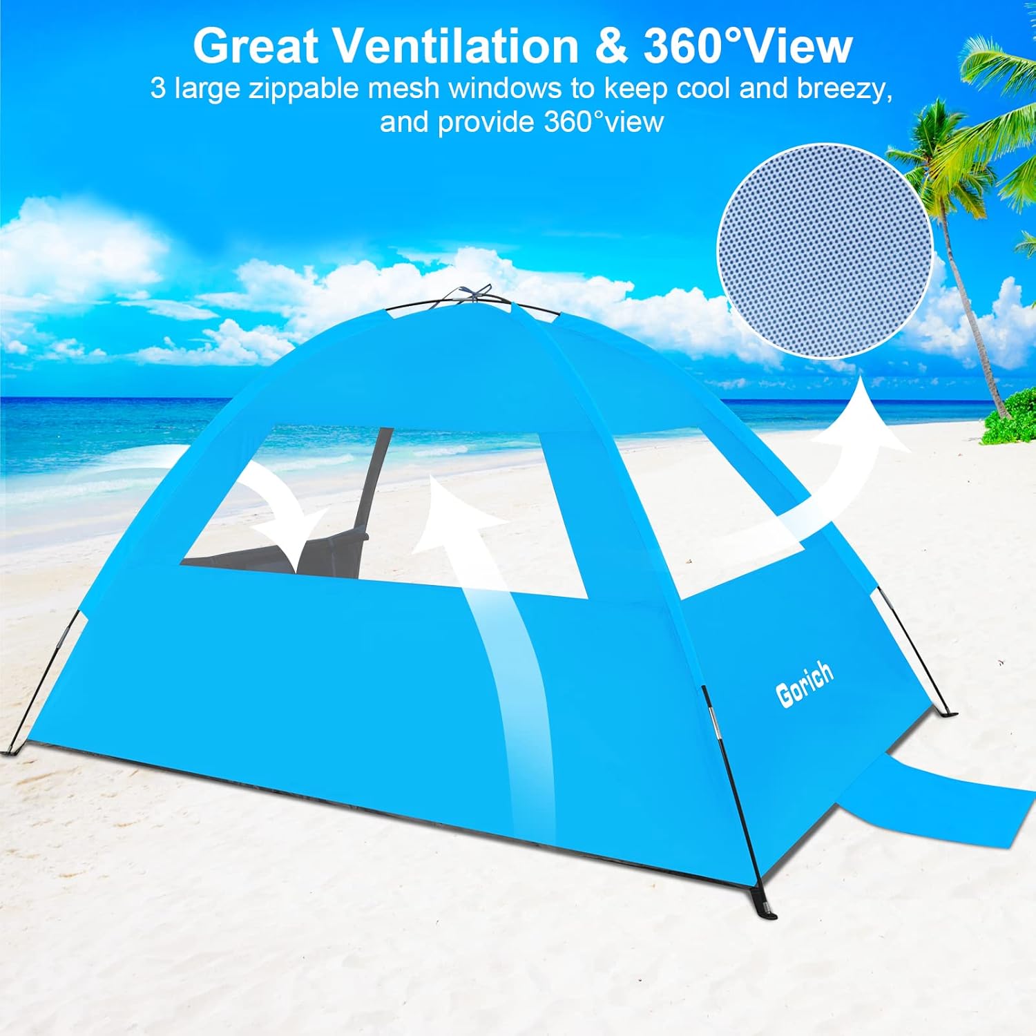 Gorich Beach Tent Sun Shelter for 3/4-5/6-7/8-10 Person with UPF 50+ UV Protection, Lightweight & Easy Setup Beach Shade Canopy, Portable Beach Shade Tent Beach Cabana