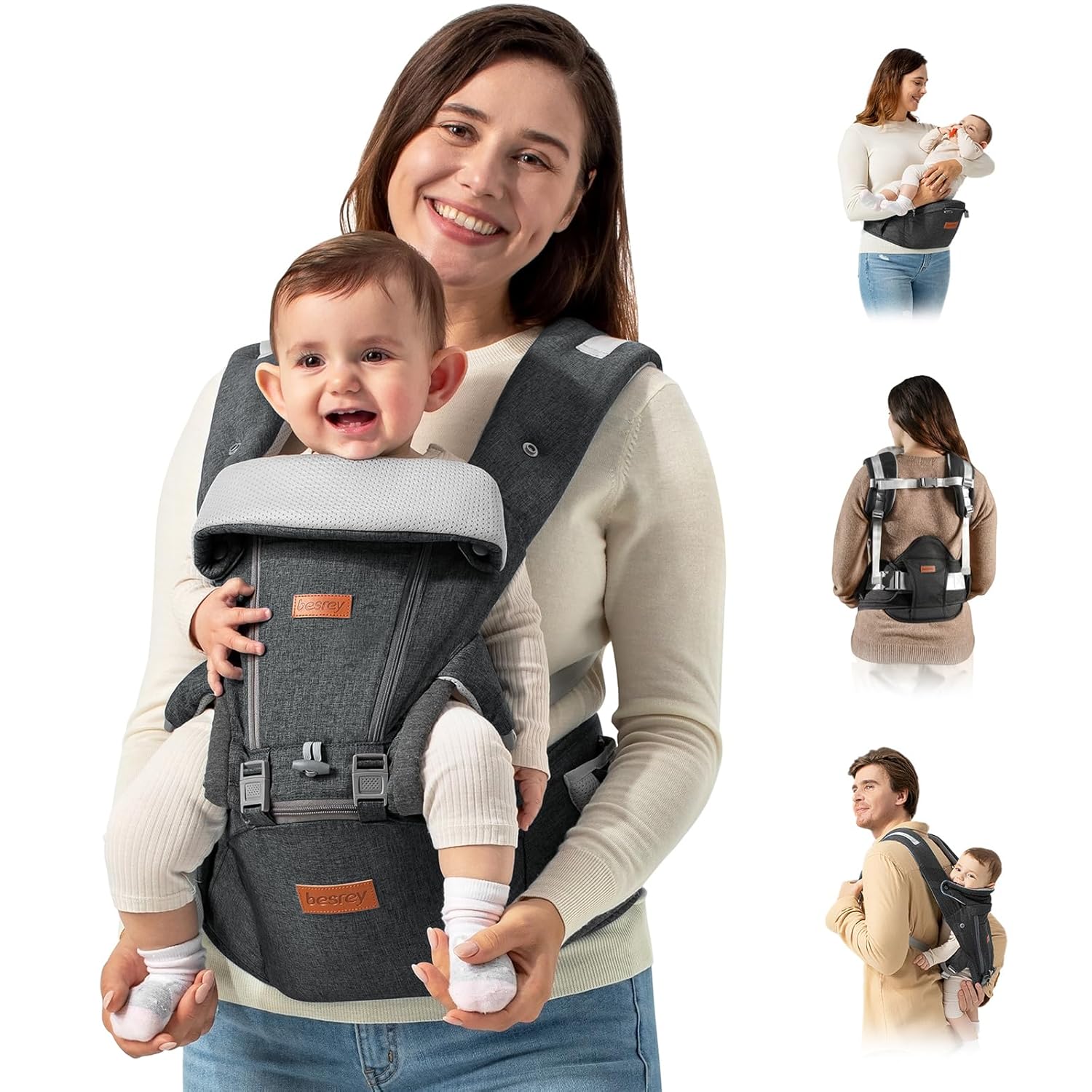 - ๐๐๐๐ฅ๐ญ๐ก-๐ ๐ข๐ซ๐ฌ๐ญ ๐๐ง๐ ๐ข๐ง๐๐๐ซ๐ข๐ง๐ : Safety-certified ergonomic hip seat maintains baby's natural "M-position" for healthy development. Plush headrest supports naps during walks, while premium baby holder carrier padding comforts during extended wear
