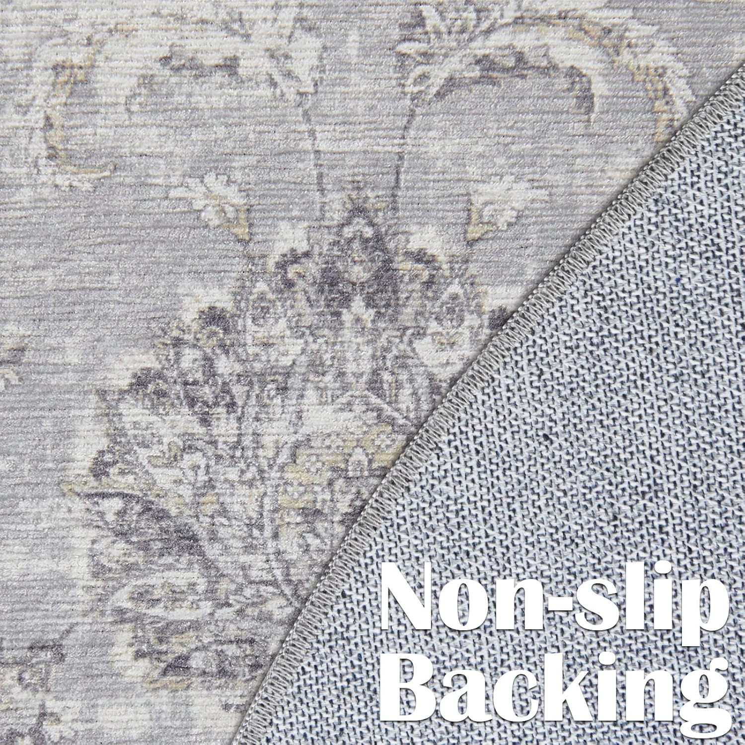 jinchan Round Rug 5ft Area Rugs Vintage Floral Distressed Design - Machine Washable Non-Slip Low-Pile Ultra-Thin Circle Rug for Entryway Bedside Living Room Dining Room Bedroom (5' Round,Grey)