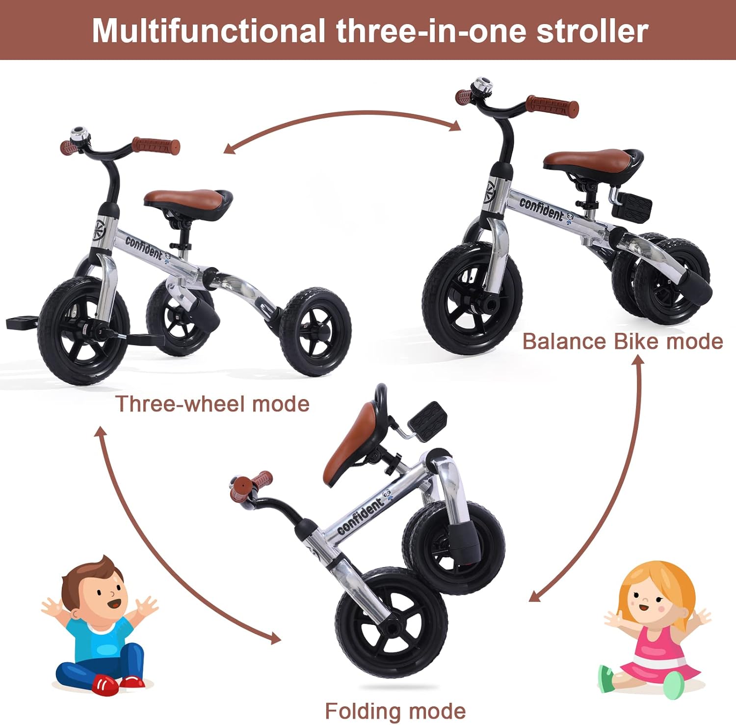 - 😊Recommended Age: Suitable for 2-5 years old kids. Pedal or pedalless Tricycle-Mode for 24-32 months toddler, Balance-Bike-Mode for 2-4 years old children. Seat height is adjustable from 15.7 to 18.5 inch. Meet different needs during your kids' growth. Max. load capacity up to 55 lbs.