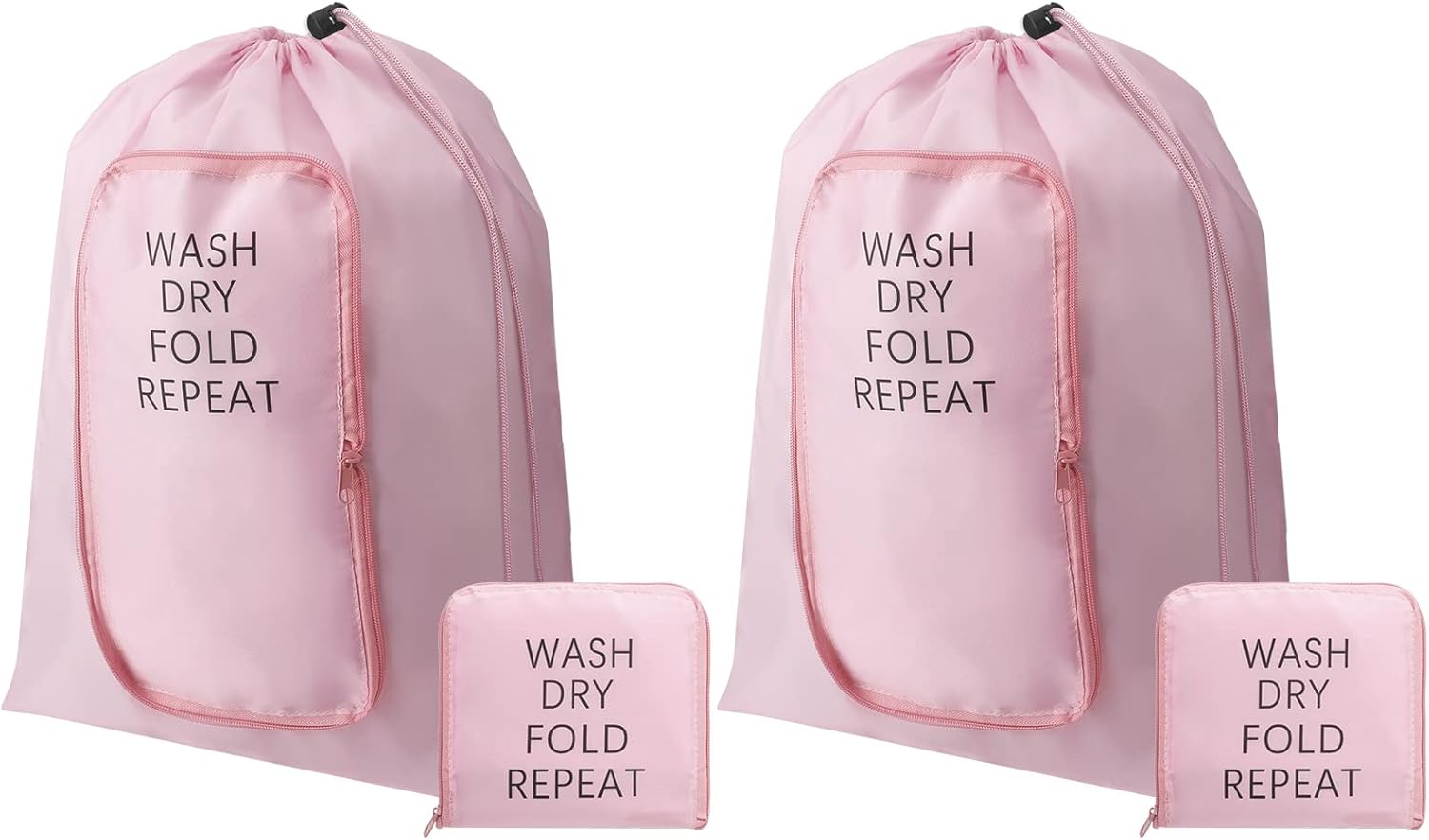 2 Pcs Travel Laundry Bag Washable Dirty Clothes Bag with Drawstring and Zipper for Suitcase, 22 x 18 Inch (Pink,Classic)