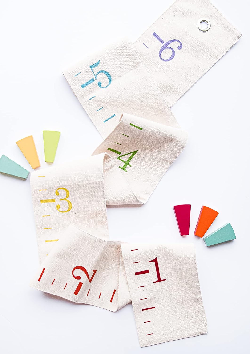 - TIMELESS DESIGN: The height chart is crafted with cream-colored canvas and features rainbow colorful hand-lettered ink in a stylish number style, complete with a silver grommet for easy hanging. It's the perfect addition to any room decor, especially kids room decor.