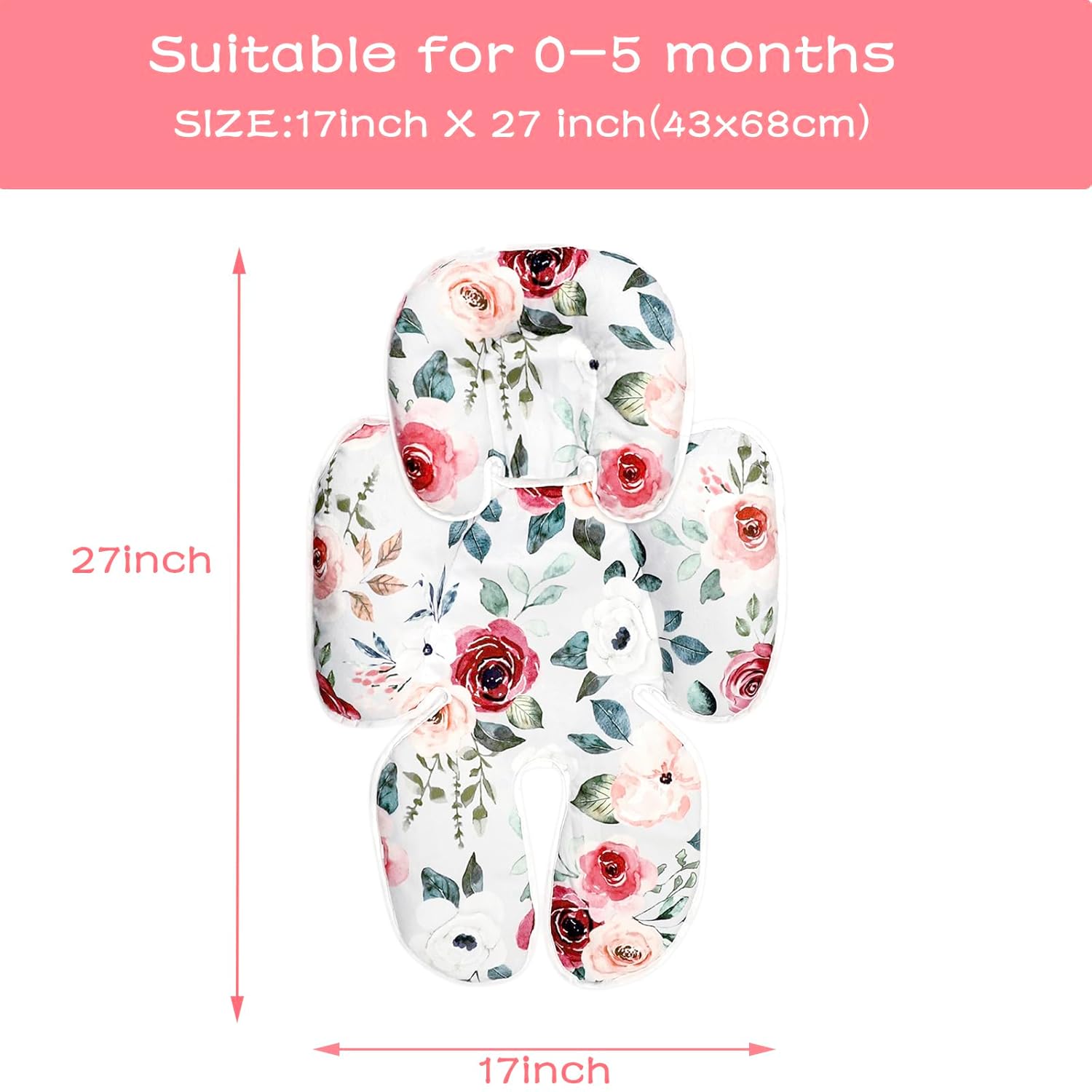 - Age Recommended: The newborn carseat insert cushion measures 27.5 x 17 inches and is recommended for premature babies and babies weighing up to 15 lbs