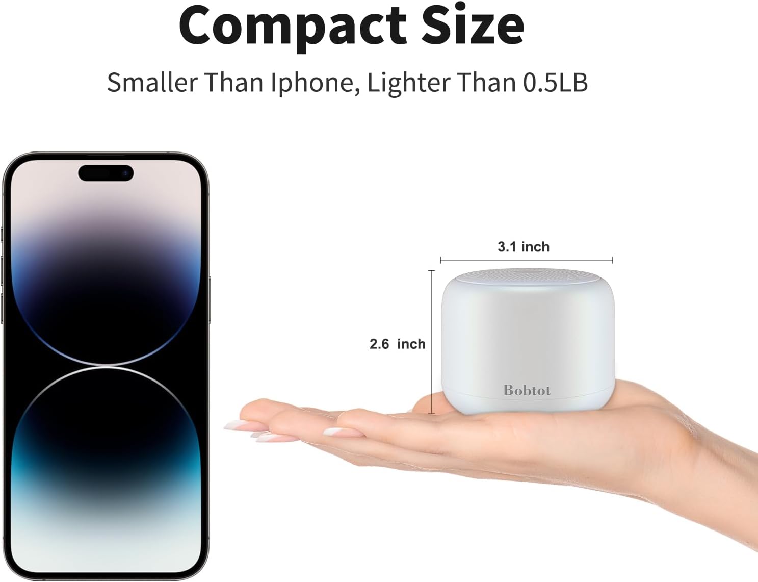 Bobtot Portable Bluetooth Speakers with Strap Easy to Carry, Wireless IPX5 Waterproof Mini Speaker with Loud Stereo Sound, 20 Hours Playtime, Rechargeable Battery, Built-in Microphone, White