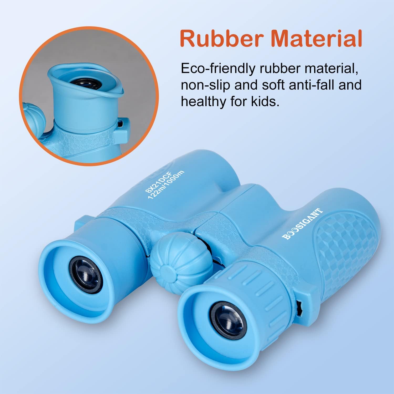 - Super Safety: Soft rubber surrounded eyepieces are included for eye protection so children don't hurt their eyes or face.Durable binoculars that can withstand drops and falls on floors due to rubber coating that absorbs shock.