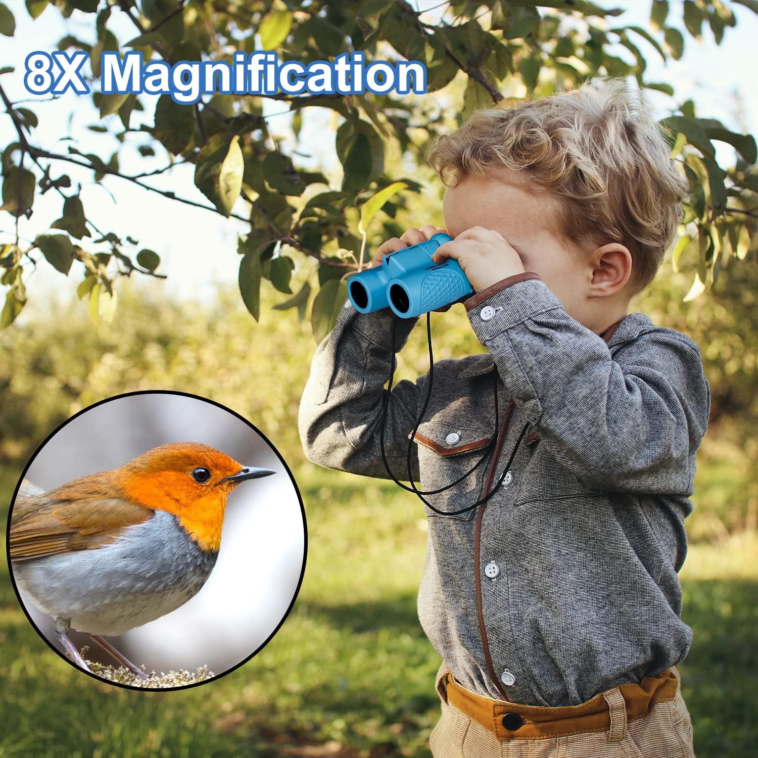 Binoculars for Kids 8x21, Gift for 3-12 Years Boys & Girls, Compact Kids Binoculars High-Resolution Shockproof Mini Binoculars for Bird Watching, Hiking, Camping, Travel Blue 301
