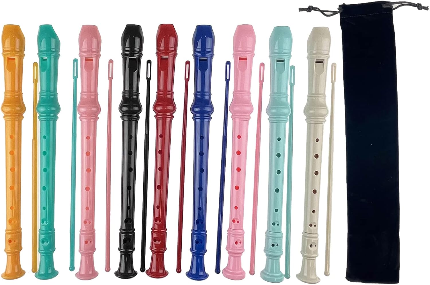 - Package included: 9 x ABS soprano recorder, 9 x cleaning rod, 9 x black storage bag, 9 x fingering chart instruction