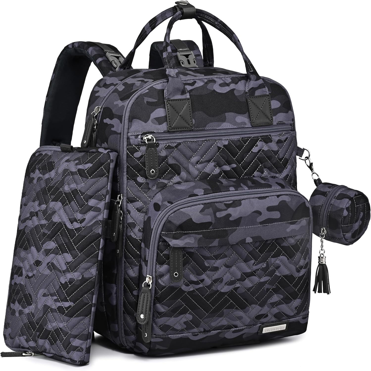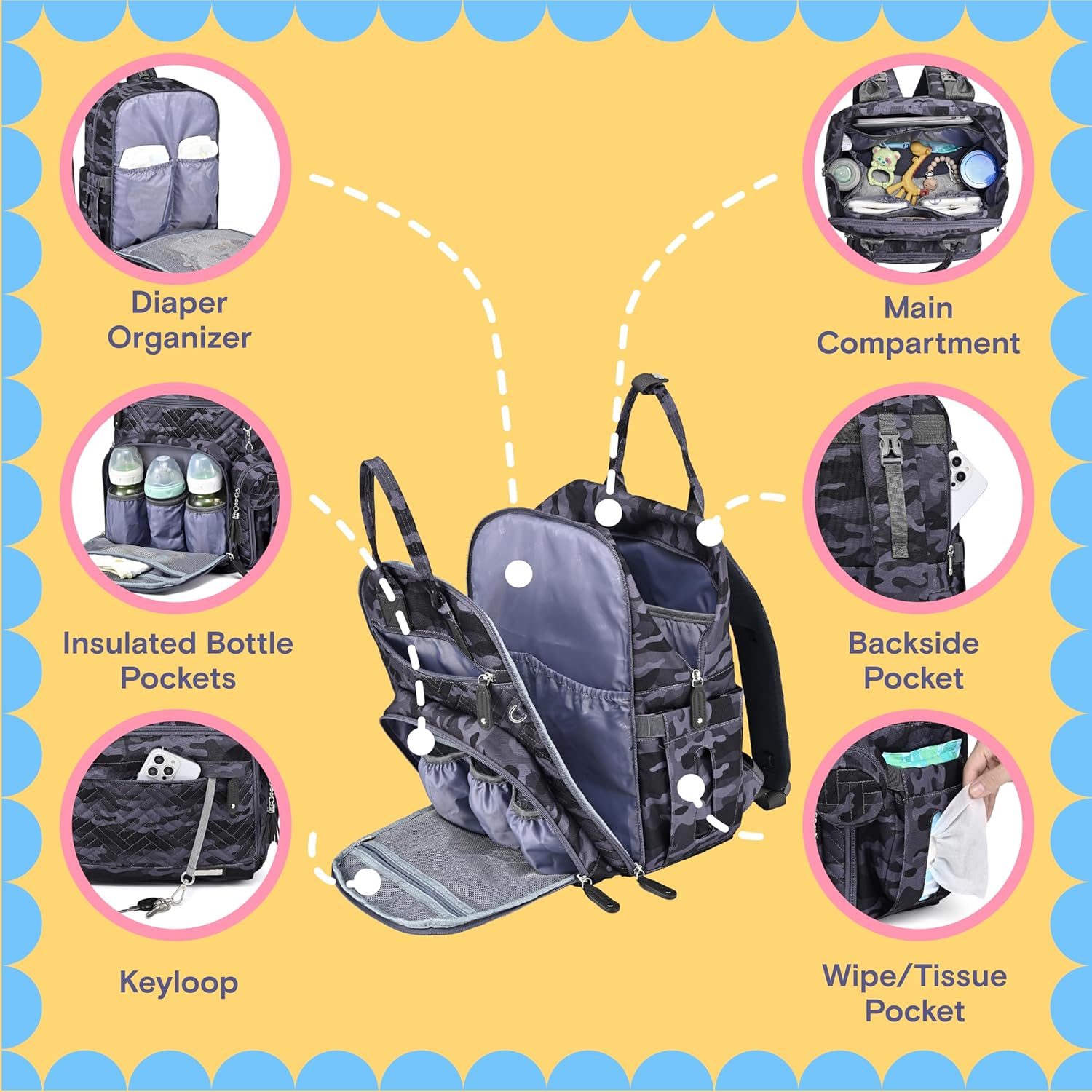 - 4 in 1 Diaper Bag: All-in-one design includes a diaper backpack, a diaper pouch, a washable changing pad, a pacifier case, and built-in stroller straps. The water-resistant outer fabric and lining make for the clean and mess-free organization for all necessities. With the fashion outlook, it will even be used long after the diapering stage.