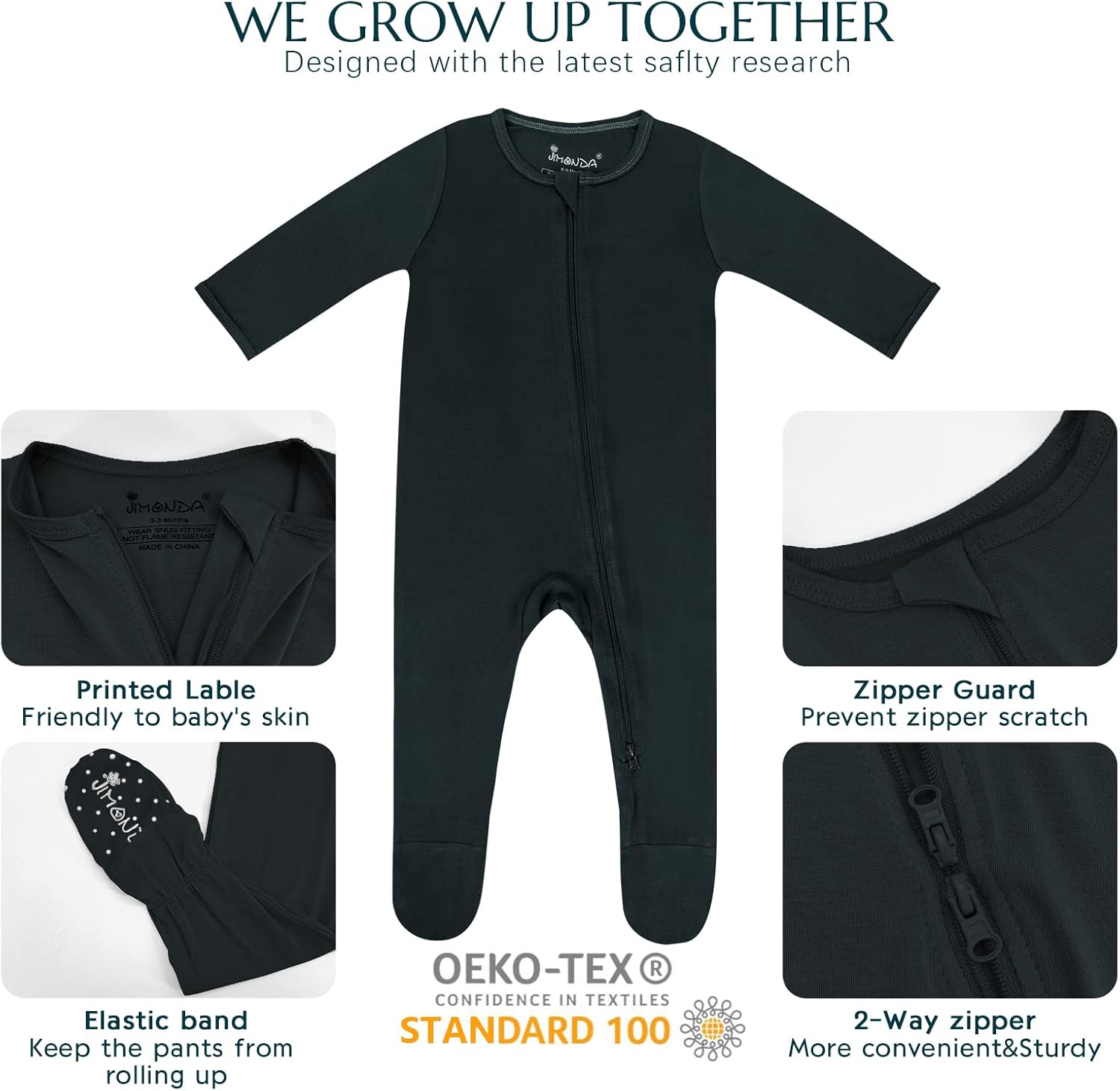 Jimonda Bamboo Baby Pajamas,Unisex Boys Girls One-Piece Footies,Long Sleeve Sleepers 2-Way Zip closure Romper