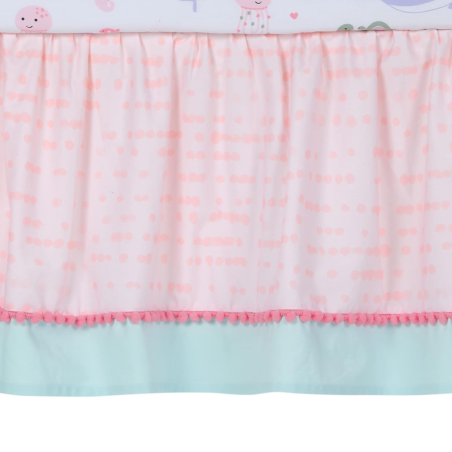 - Shirred cotton blend crib skirt with pom pom detail adds the finishing touch to your child’s crib