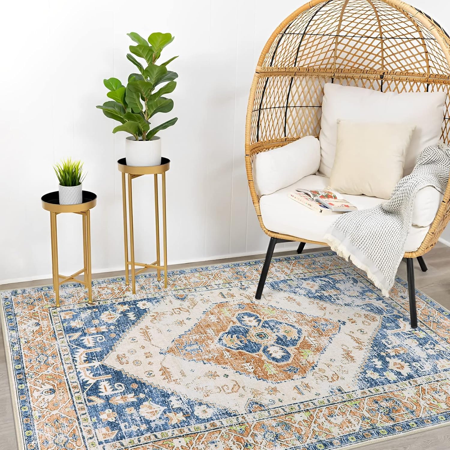 - Oriental Design: The indoor rug is made of comforable chenille material, which is lightweight, soft and stain resistant in daily use. Classic colors with elements of medallion and borders make your room vintage and vibrant