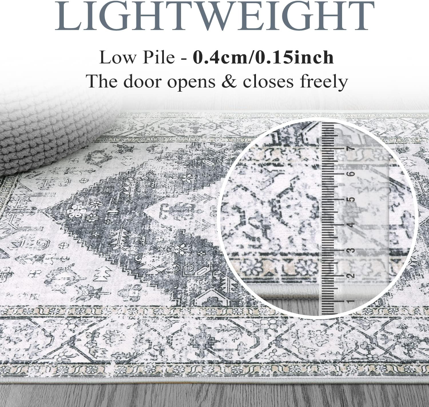 Lahome Boho Washable Rugs for Bedroom - 3x5 Area Rugs for Living Room Throw Non-Slip Thin Entryway Rug Kitchen Rugs Grey Oriental Distressed Print Capet for Office Bathroom Laundry Room Dining Room