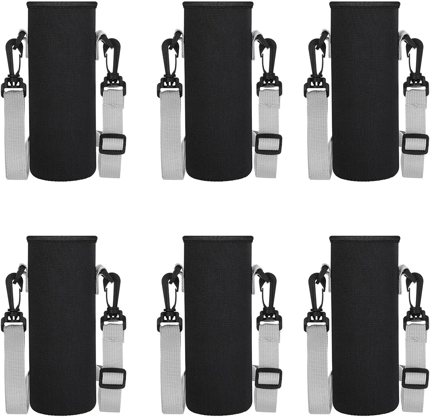 Rtteri 6 Pcs Neoprene Water Bottle Carrier Bag with Adjustable Shoulder Strap 32oz Insulator Water Bottle Cover Holder Cooler Sleeve for Stainless Steel/glass/plastic (Black)