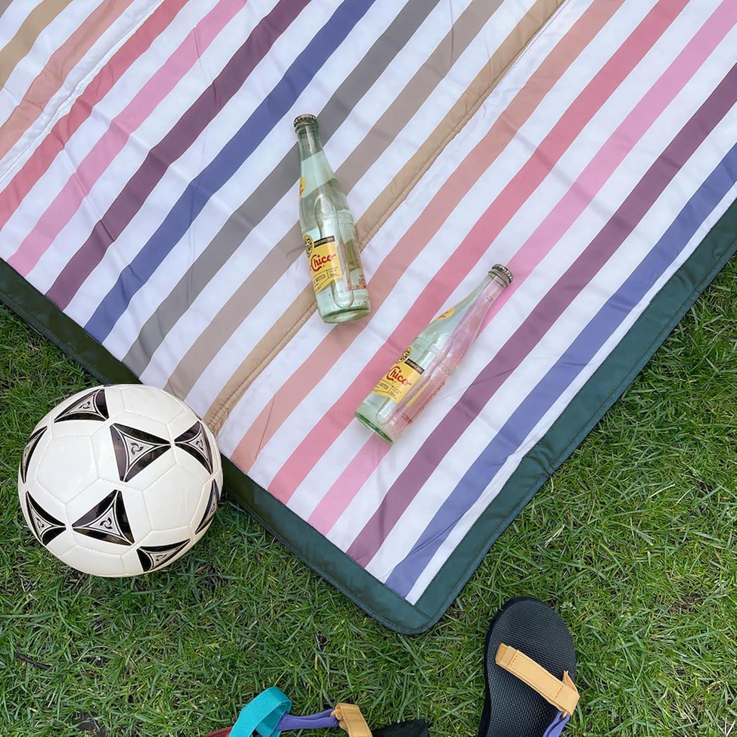 Little Unicorn 5'x10' XL Outdoor Family Picnic & Beach Blanket | Durable & Water-Resistant Fabric | Compact Fold & Easily Wipes Clean | Zipper Pocket (Chroma Rugby Stripe)