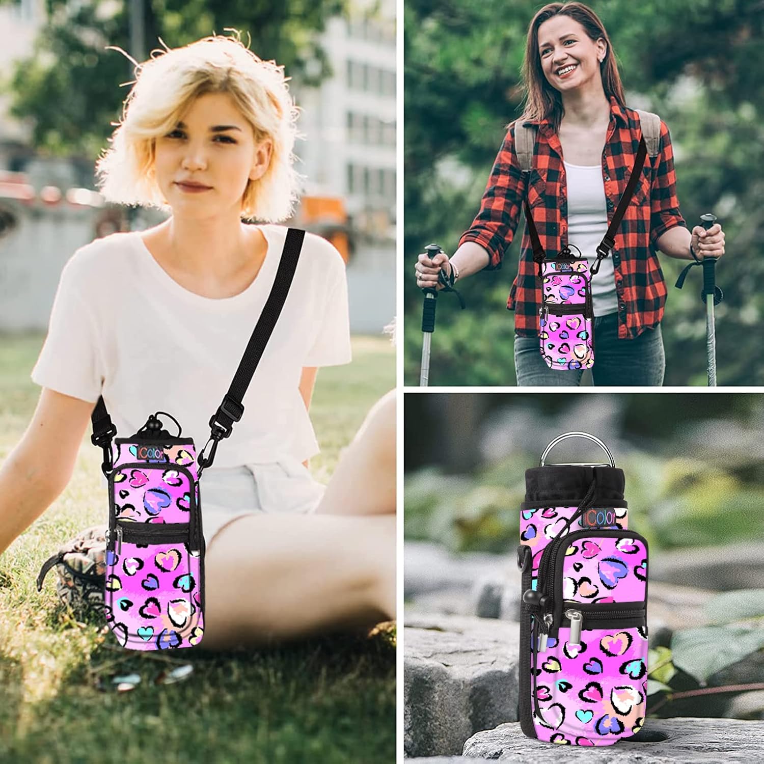 - icolor Sports Wide Mouth Bottle Accessories for Hiking Travelling Camping: Have Adjustable Padded Shoulder and Handle Strap. It is with 2 zipper Pockets too,The small zipper pocket is for cash and card, the large zipper pocket is for smartphone, keys & other.