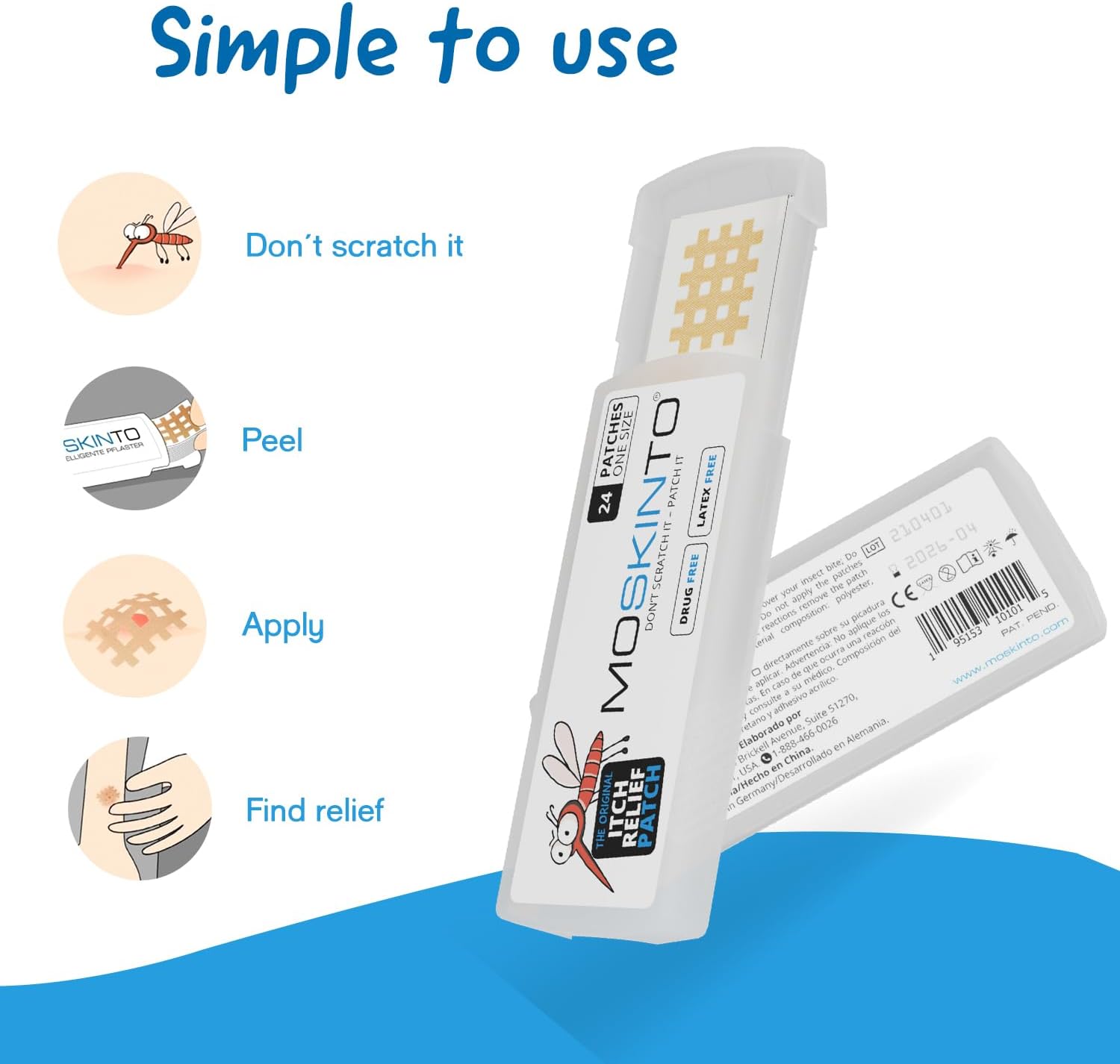 - Convenient Travel Pack: This Moskinto’s insect bites itch relief pack contains 24 nude-colored patches, ideal for easy storage in pockets and bags so you can take them wherever you go; Whether you're a parent, outdoor enthusiast, or someone prone to insect bites, Moskinto is your go-to for an itch-free lifestyle