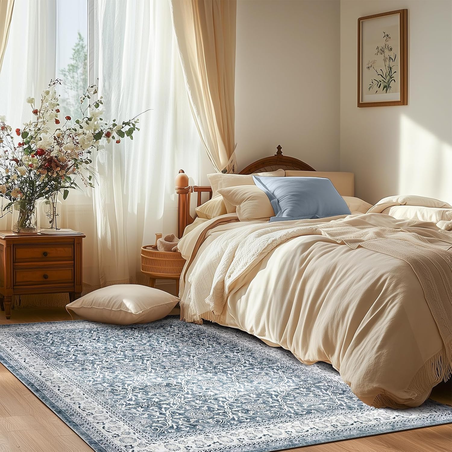 jinchan Floral Area Rugs 4x6 - Machine Washable Vintage Distressed Boho Design Throw Rug Stain Resistant Carpet Low Pile Ultra-Thin Non-Slip for Bedroom Living Room Dining Room Kitchen (4‘x6',Grey)