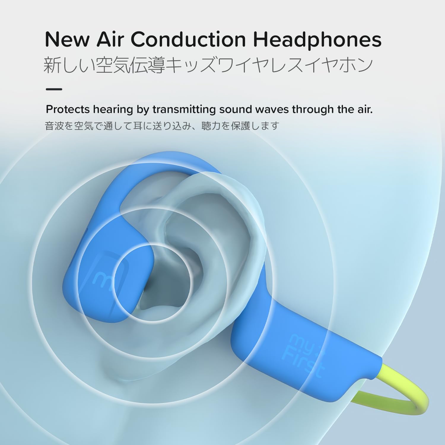 myFirst Headphones Airwaves - Air Conduction Open Ear Wireless Bluetooth Headphones with Mic for Toddlers and Kids, 85dB Safe Limit, Long Battery Life, Durable, IPX5 Waterproof for Kids 3-12 (Blue)