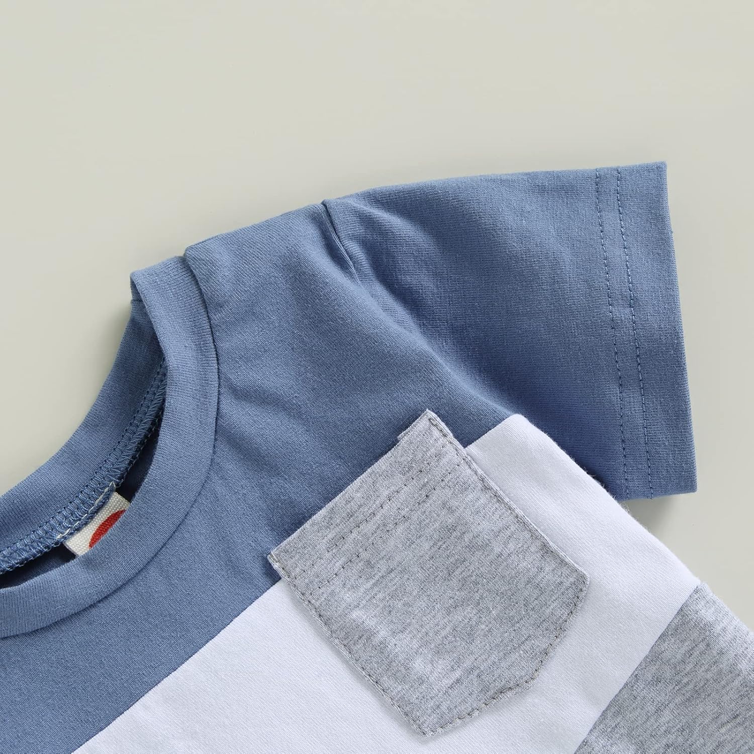 • The baby boy suit is designed as short sleeve patchwork tops and shorts with elastic waistband. Babies should wear these patchwork colors in their summer.