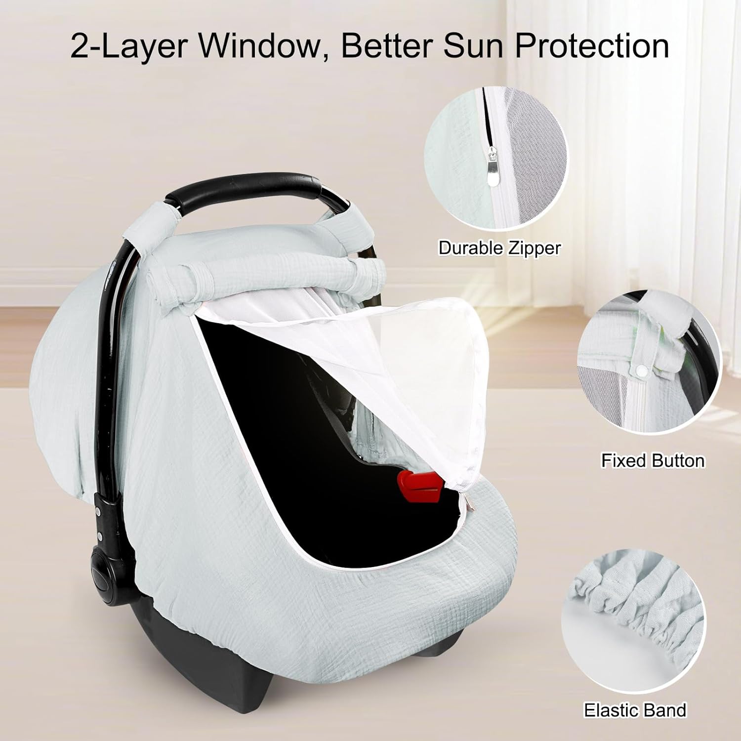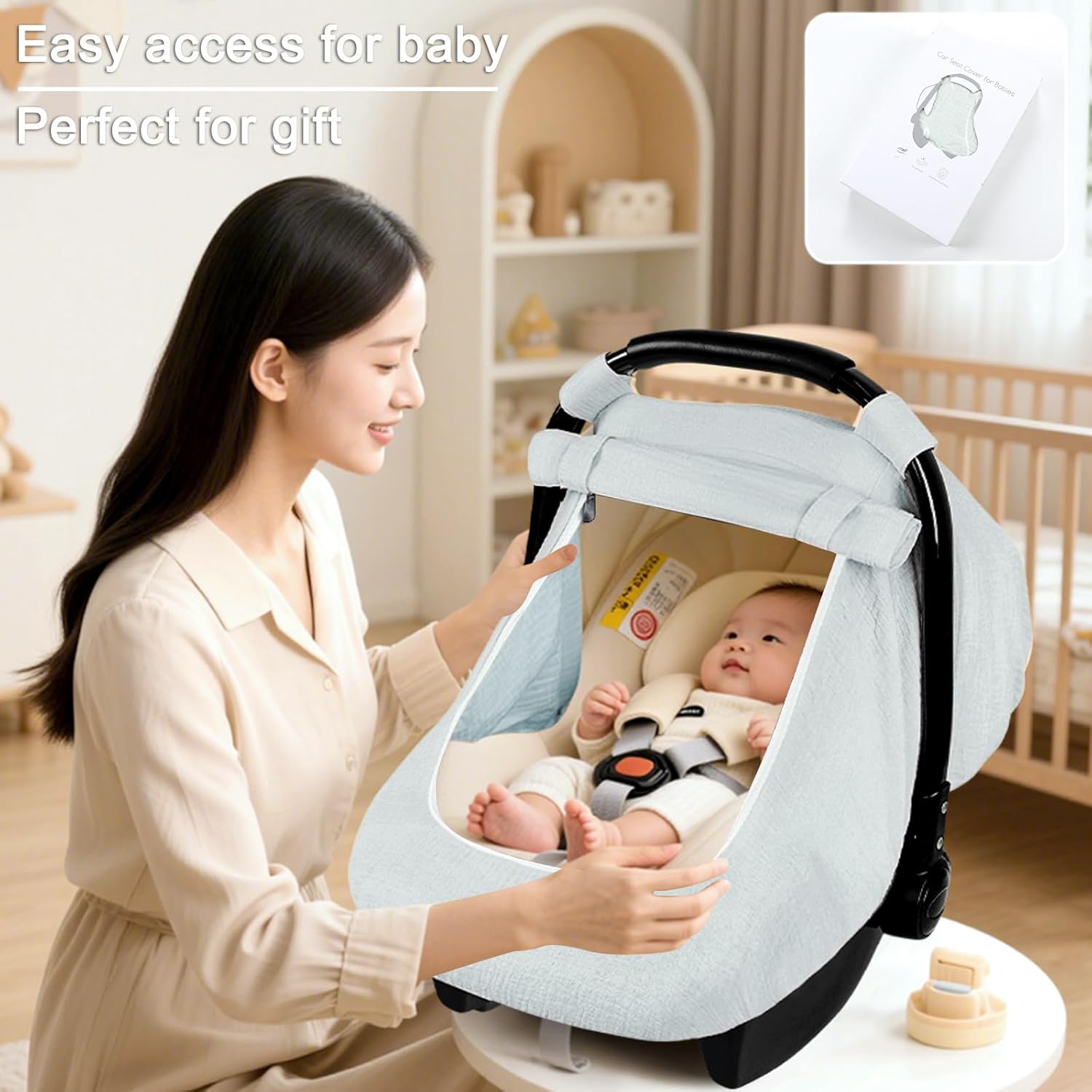- COMPREHENSIVE PROTECTION: Our muslin car seat cover provides comprehensive protection for your baby, keeping your baby away from strangers, wind, and sunlight, mosquito or unwanted attention while they sleep outdoor, creating a quiet environment for your little one