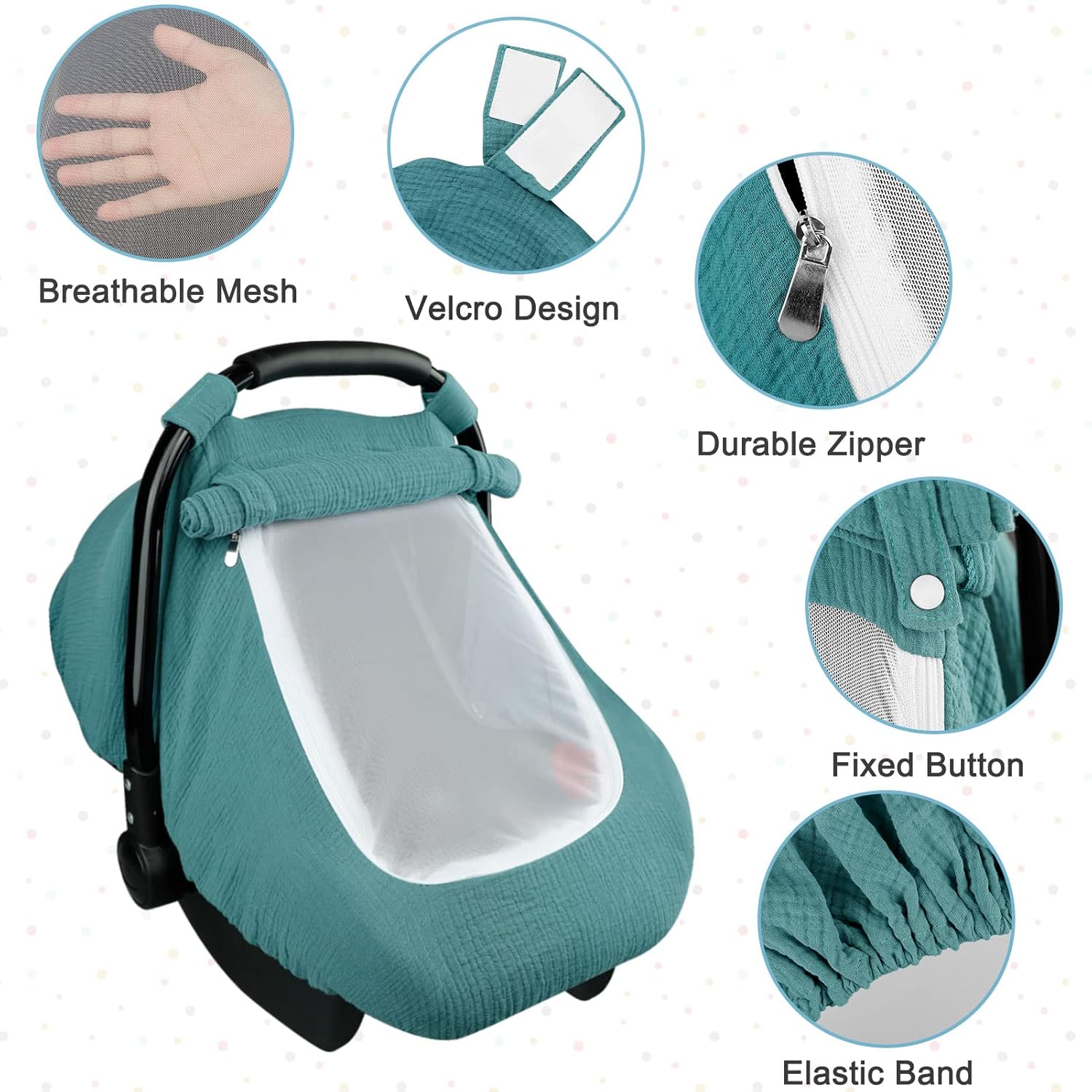 - BREATHABLE AND LIGHTWEIGHT: The baby car seat cover is made of high quality Muslin Gauze material, soft and breathable, the baby won't getting overheated in the car seat when the weather is hot. Muslin fabric is particularly lightweight and thin, which does not cause much weight while carrying your baby